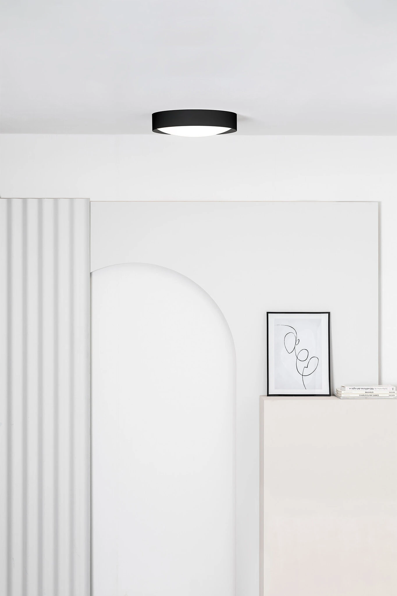 Μαύρο φωτιστικό οροφής τεχνολογίας LED. Η πηγή φωτός είναι ουδέτερο φως LED 40W, ενσωματωμένο. Τα χαρακτηριστικά του VUK, με IP44, κάνουν αυτή τη λάμπα την τέλεια επιλογή για φωτισμό μπάνιου.