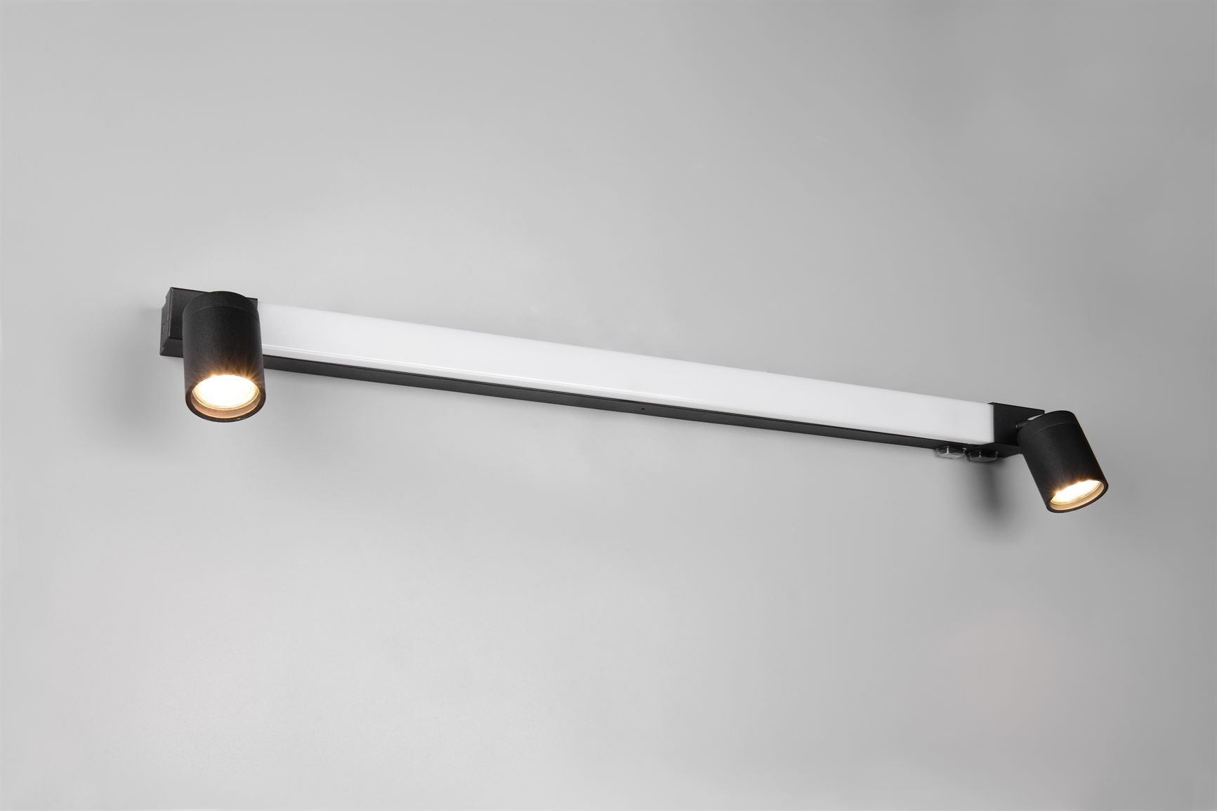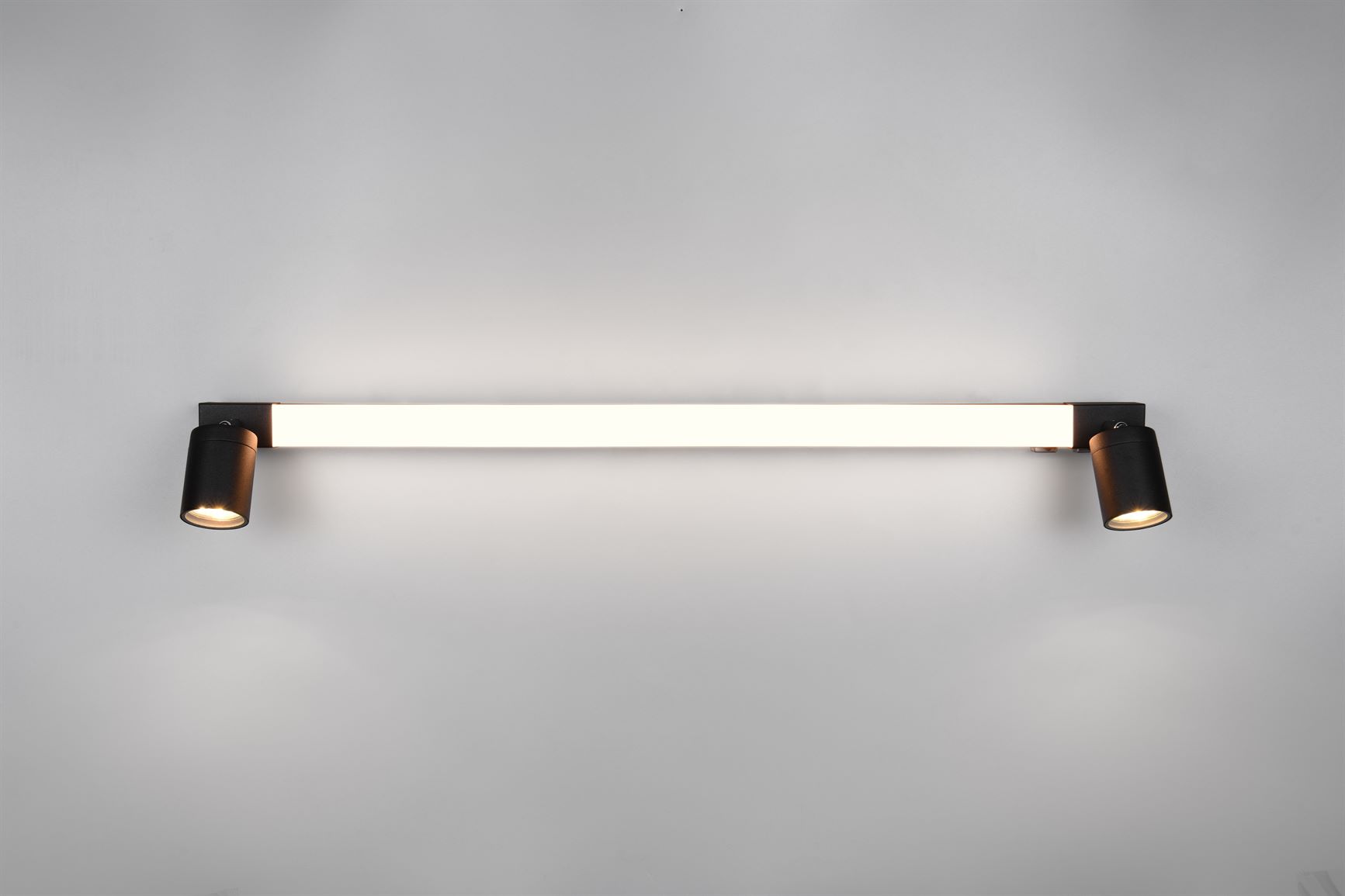 Το φωτιστικό τοίχου ENRICO είναι η ιδανική επιλογή για κάθε μοντέρνο μπάνιο. Ο κομψός, επιμήκης σχεδιασμός του εξασφαλίζει ομοιόμορφο και ευχάριστο φωτισμό. Επιπλέον, δύο προβολείς είναι προσαρτημένοι και στις δύο πλευρές του κύριου φωτός για να παρέχουν στοχευμένες πινελιές φωτισμού και βέλτιστο φωτισμό. Με βαθμό προστασίας IP44, το φωτιστικό προστατεύεται βέλτιστα από το πιτσίλισμα του νερού και επομένως είναι τέλειο για υγρά περιβάλλοντα. Ένας ενσωματωμένος διακόπτης καθιστά δυνατό τον έλεγχο της κύριας πηγής φωτός και των πλευρικών σημείων χωριστά, επιτρέποντάς σας να προσαρμόσετε ευέλικτα τον φωτισμό στις ανάγκες και τις προτιμήσεις σας. Το χρώμα του φωτός μπορεί επίσης να ρυθμιστεί ξεχωριστά και το φως έχει μια πρακτική λειτουργία μνήμης. Το μαύρο ματ φινίρισμα τονίζει την καθαρότητα και την ακρίβεια του σχεδιασμού και προσθέτει μια πινελιά πολυτέλειας και ανθεκτικότητας στο μπάνιο. Η χρήση πηγών φωτός LED συνιστάται για φωτισμό εξοικονόμησης ενέργειας. Αυτές είναι μια ιδανική εναλλακτική λύση σε σχέση με τις συμβατικές πηγές φωτός αλογόνου και προσφέρουν υψηλή ποιότητα φωτός και εξοικονόμηση ενέργειας έως και 80%. Με τις πηγές φωτός LED, επωφεληθείτε επίσης από τη μεγάλη διάρκεια ζωής και τη χαμηλή παραγωγή θερμότητας προστατεύοντας παράλληλα το περιβάλλον.