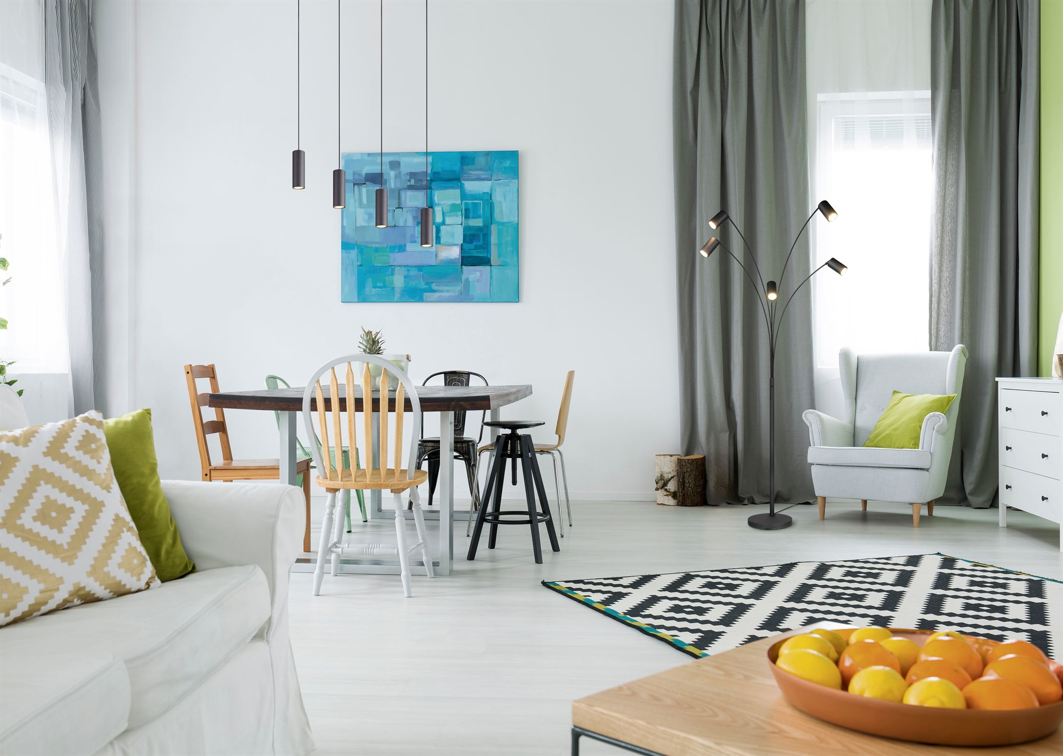 Η μινιμαλιστική τάση επίπλωσης γίνεται ολοένα και πιο δημοφιλής και δημιουργεί ένα ήρεμο και αρμονικό περιβάλλον. Οι καθαρές γραμμές και ο μινιμαλιστικός σχεδιασμός του ανεξάρτητου φωτιστικού MARLEY φέρνουν το φως στο επίκεντρο και δημιουργούν ατμοσφαιρικούς φωτιστικούς τόνους. Οι πέντε κεφαλές λαμπτήρων είναι κινητές και μπορούν να ευθυγραμμιστούν ελεύθερα. Είτε ως φως ανάγνωσης δίπλα στον καναπέ είτε ως πηγή φωτός στο διάδρομο, το φωτιστικό δαπέδου διαμορφώνει το σκηνικό για ιδιαίτερα μέρη. Ο συνδυασμός μαύρου ματ δημιουργεί κομψές αντιθέσεις σε απλούς χώρους διαβίωσης. Συνιστάται η χρήση πηγών φωτός LED για φωτισμό εξοικονόμησης ενέργειας. Αυτές είναι μια ιδανική εναλλακτική λύση σε σχέση με τις συμβατικές πηγές φωτός αλογόνου και προσφέρουν υψηλή ποιότητα φωτός και εξοικονόμηση ενέργειας έως και 80%. Με τις πηγές φωτός LED, επωφεληθείτε επίσης από τη μεγάλη διάρκεια ζωής και τη χαμηλή παραγωγή θερμότητας προστατεύοντας παράλληλα το περιβάλλον.