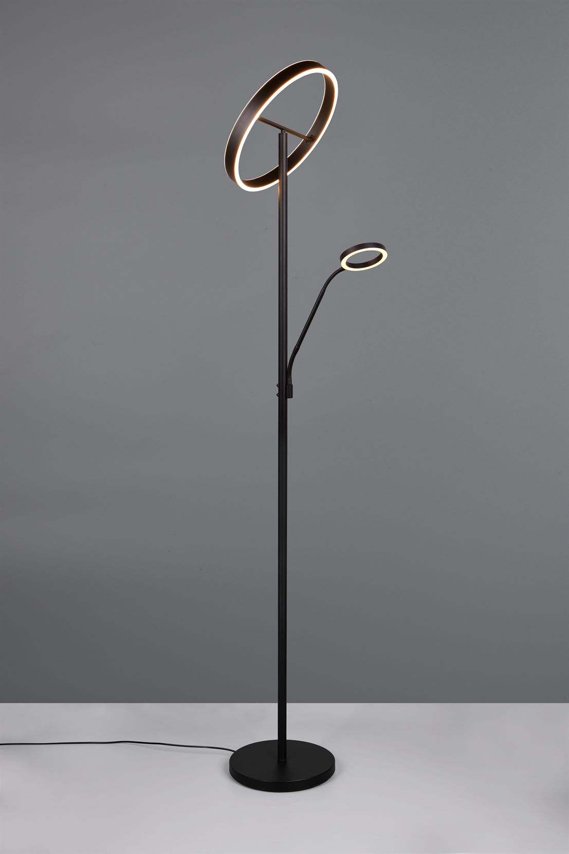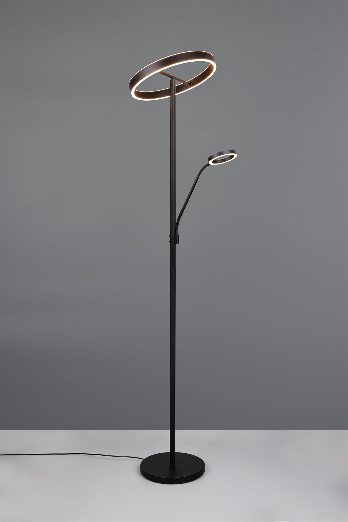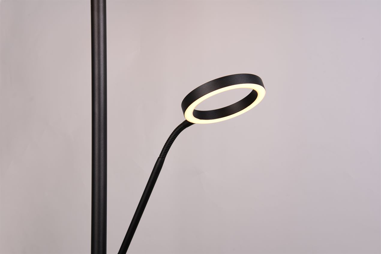 Το φωτιστικό δαπέδου WILLIS εντυπωσιάζει με τον κομψό σχεδιασμό και την εκλεπτυσμένη λειτουργικότητά του. Η φωτεινή κεφαλή σε σχήμα δακτυλίου και ο εύκαμπτος βραχίονας ανάγνωσης προσφέρουν μια ευρεία γκάμα επιλογών φωτισμού που μπορούν να προσαρμοστούν για να ταιριάζουν στις μεμονωμένες απαιτήσεις. Και οι δύο πηγές φωτός μπορούν να αλλάξουν ξεχωριστά, ενώ το χρώμα και η φωτεινότητα του φωτός μπορούν να ρυθμιστούν ξεχωριστά. Αυτό επιτρέπει τον ακριβή έλεγχο του φωτισμού, είτε για ζεστά βράδια στον καναπέ είτε ως διακριτικό φωτισμό φόντου. Η μοντέρνα εμφάνιση σε μαύρο ματ δίνει στο φως μια διαχρονική εμφάνιση που συνδυάζεται αβίαστα σε μια ποικιλία εσωτερικών στυλ. Το φωτιστικό διαθέτει επίσης σύγχρονη τεχνολογία LED, η οποία χαρακτηρίζεται από υψηλή ποιότητα φωτισμού και ενεργειακή απόδοση. Σε σύγκριση με τις συμβατικές πηγές φωτός αλογόνου, μπορεί να εξοικονομηθεί έως και το 80% του ενεργειακού κόστους. Οι πηγές φωτός LED έχουν επίσης μεγάλη διάρκεια ζωής, παράγουν λιγότερη θερμότητα και προστατεύουν το περιβάλλον.