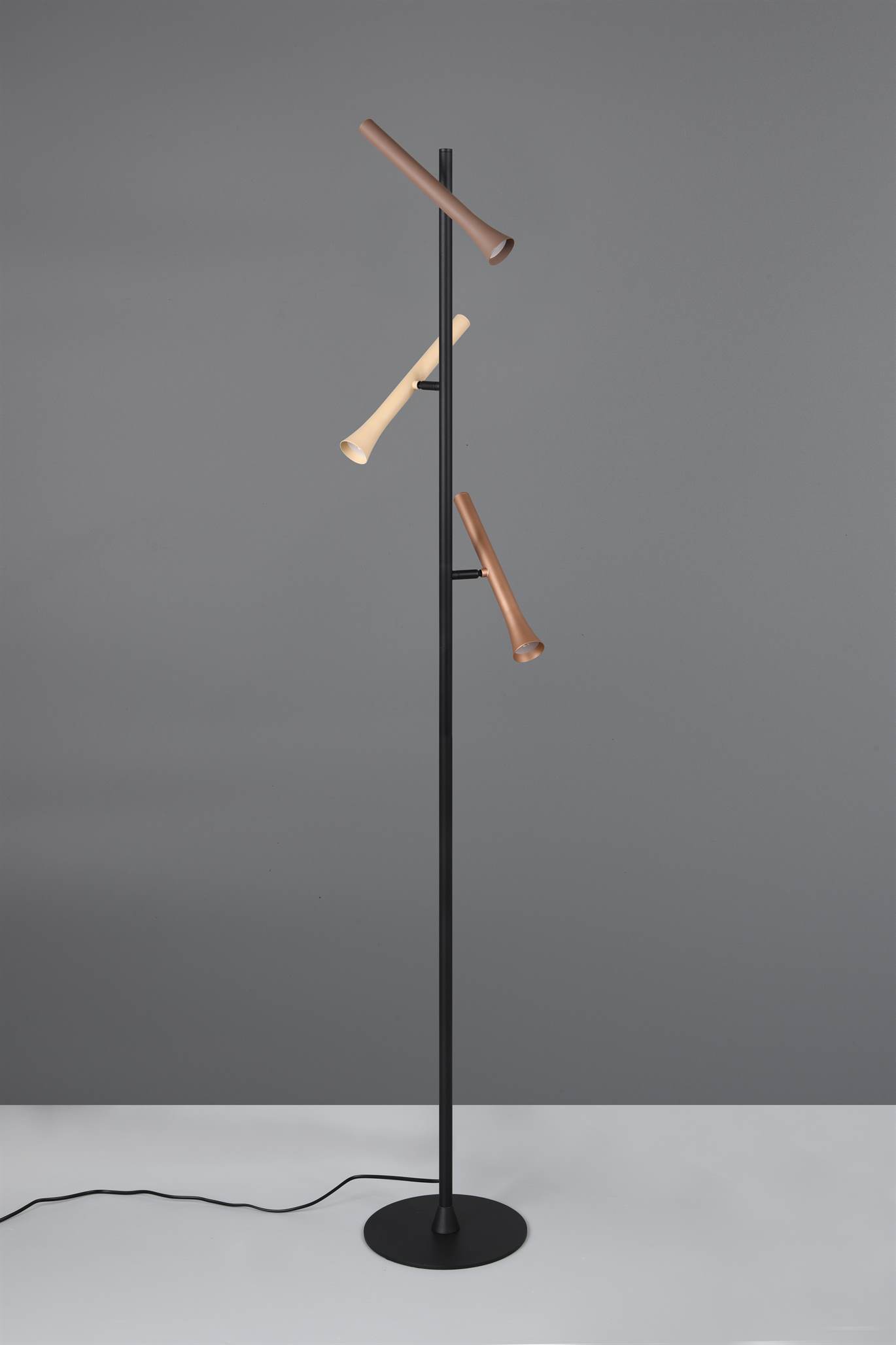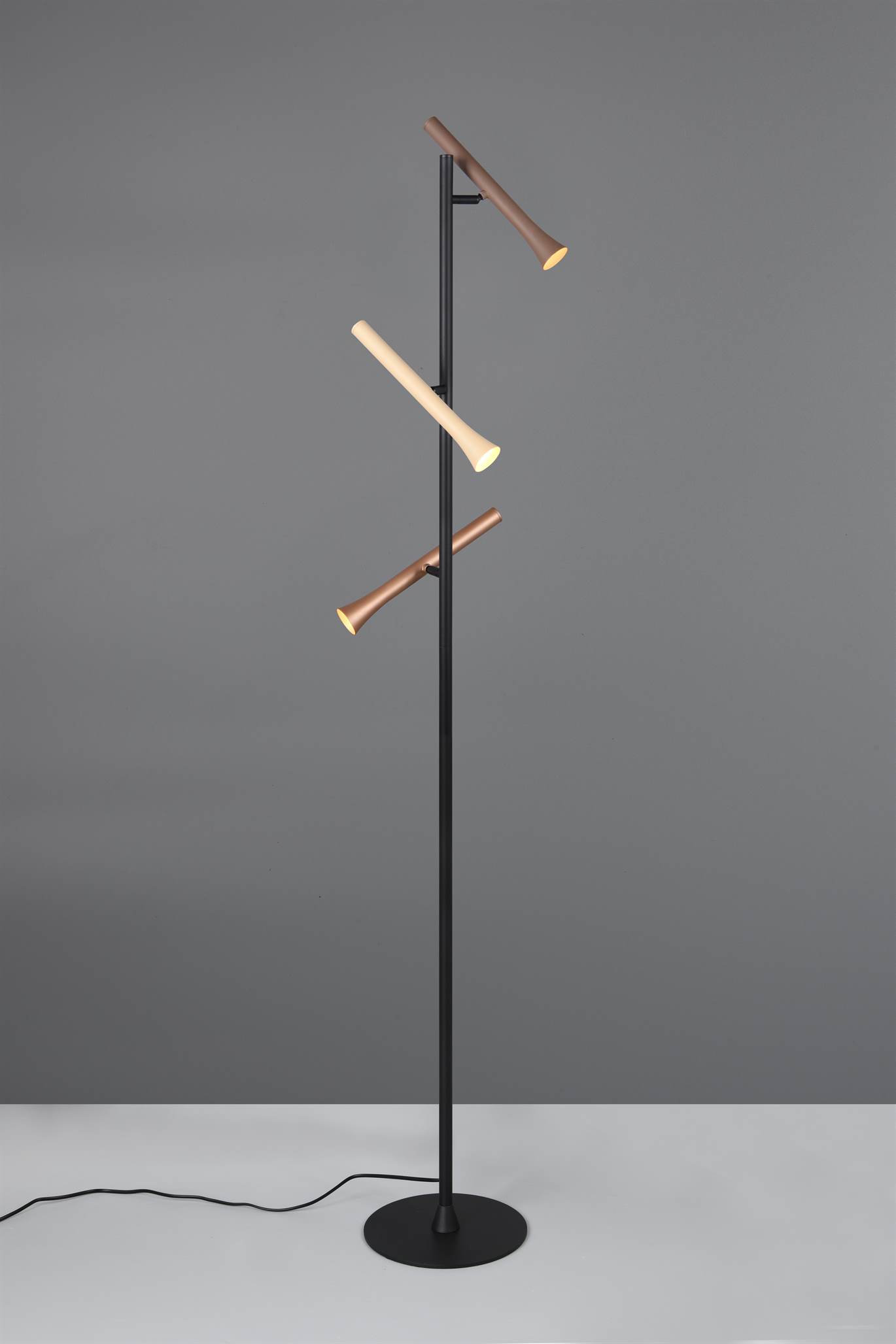Φωτιστικό Δαπέδου Μαύρο με 3 Σποτ Καφέ-Fawn-Τaupe Fiato Trio Lighting LED 9W CCT 1200lm Dimmable – 452010317