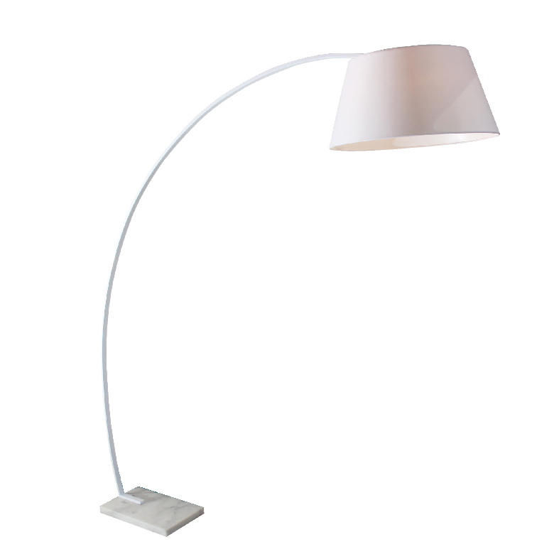 Μεταλλικό φωτιστικό δαπέδου με μαρμάρινη βάση και υφασμάτινο καπέλο με λευκή επένδυση στο εσωτερικό του . Διαθέσιμο σε λευκό και μαύρο χρώμα.