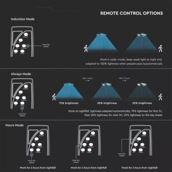 Φωτιστικό για κολώνα Κήπου LED 10W 4000K Μαύρου Χρώματος με Αισθητήρα RF και Χειριστήριο IP65 V-TAC – 5152