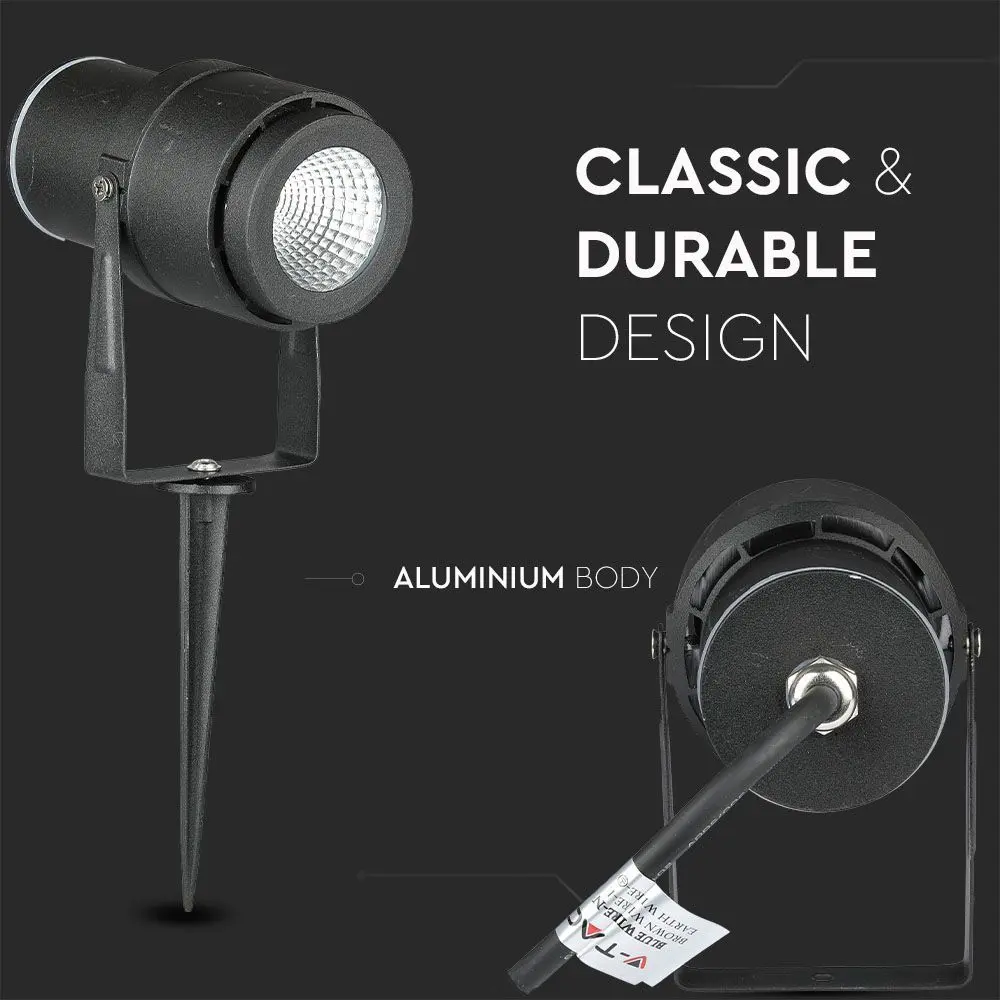 Προβολέας κήπου V-Tac VT-857 με τεχνολογία COB LED, ισχύ 12W και βαθμό προστασίας IP65. Περιλαμβάνεται ακίδα εδάφους.