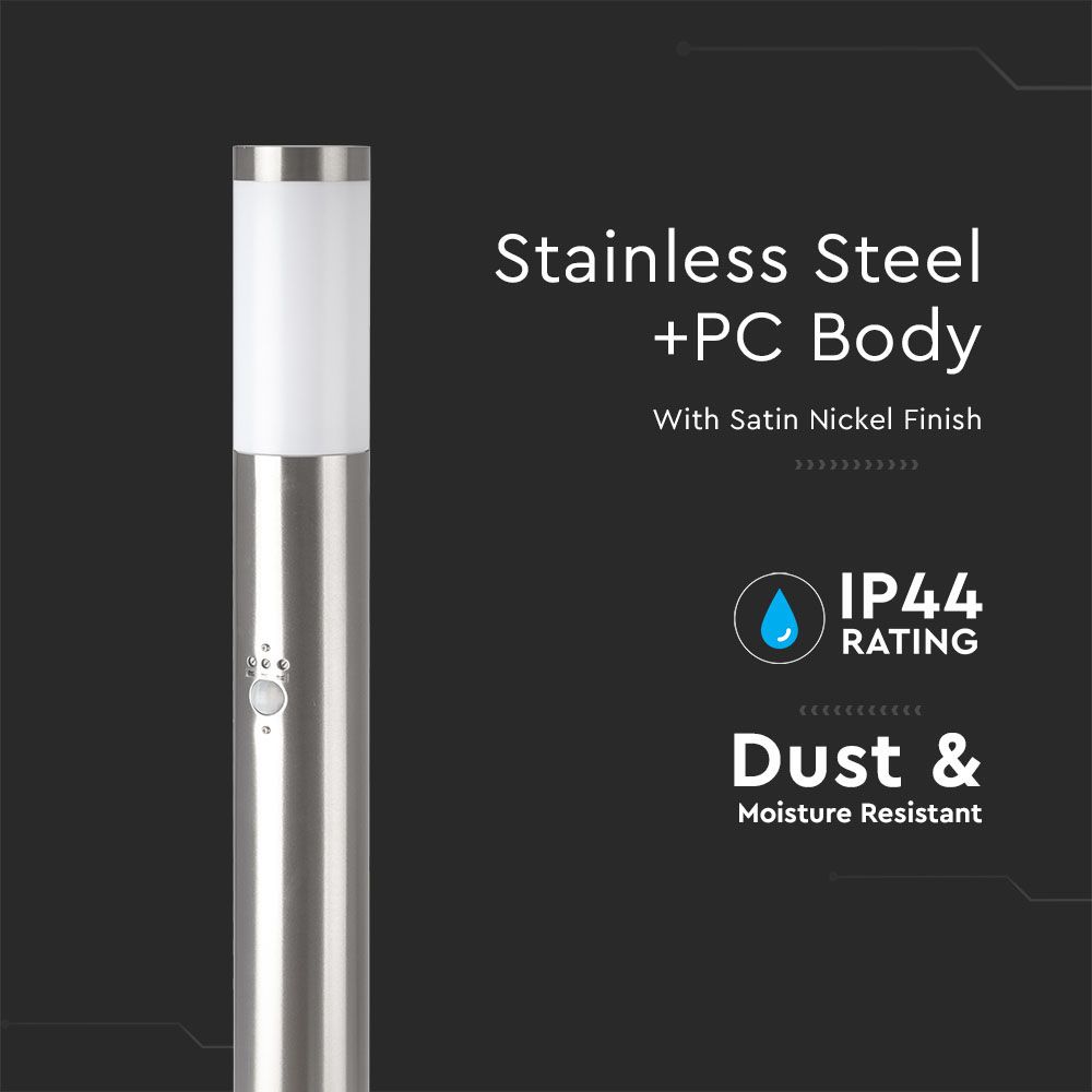 Φωτιστικό Κήπου Κολωνάκι E27 με Ανιχνευτή Κίνησης IP44 Σατεν Νίκελ 80cm V-TAC – 8960