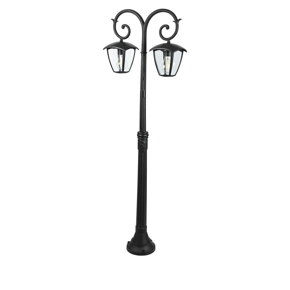 Φωτιστικό Κήπου Στύλος με Διπλό Φαναράκι E27 IP44 Αλουμίνιο – Γυαλί Μαύρο V-TAC – 7061