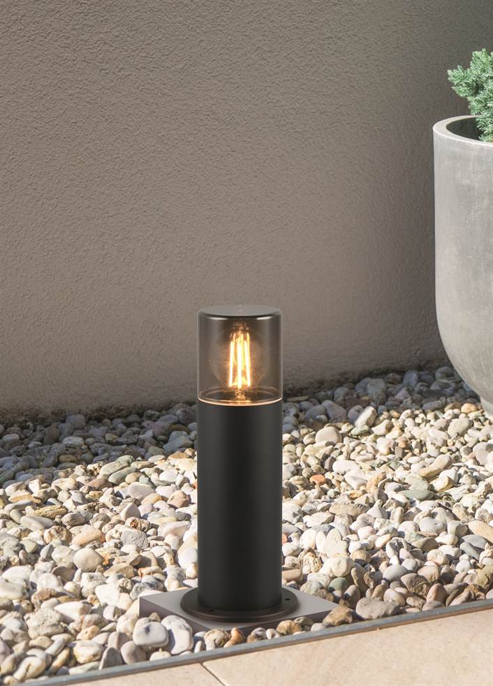 Διακοσμητικό και λειτουργικό – το φως διαδρομής HOOSIC. Στο σκοτάδι, το φωτιστικό ξεδιπλώνει το πλήρες εφέ του και εκπέμπει το φως ομοιόμορφα στον εξωτερικό χώρο, δημιουργώντας μια αποτελεσματική και ευχάριστη ένταση φωτός. Χάρη στο ανθεκτικό στις καιρικές συνθήκες χυτοπρεσαριστό αλουμίνιο σε συνδυασμό με την προστασία IP44, το φως μονοπατιού είναι ιδανικό για να φωτίζει τις εισόδους των σπιτιών ή τις σκάλες. Ο μαύρος ματ σχεδιασμός με το καπνό πλαστικό μπορεί να συνδυαστεί με διάφορους τρόπους και να εξασφαλίσει μια μοντέρνα εμφάνιση. Η χρήση πηγών φωτός LED συνιστάται για φωτισμό εξοικονόμησης ενέργειας. Αυτές είναι μια ιδανική εναλλακτική λύση σε σχέση με τις συμβατικές πηγές φωτός αλογόνου και προσφέρουν υψηλή ποιότητα φωτός και εξοικονόμηση ενέργειας έως και 80%. Με τις πηγές φωτός LED, επωφεληθείτε επίσης από τη μεγάλη διάρκεια ζωής και τη χαμηλή παραγωγή θερμότητας προστατεύοντας παράλληλα το περιβάλλον.