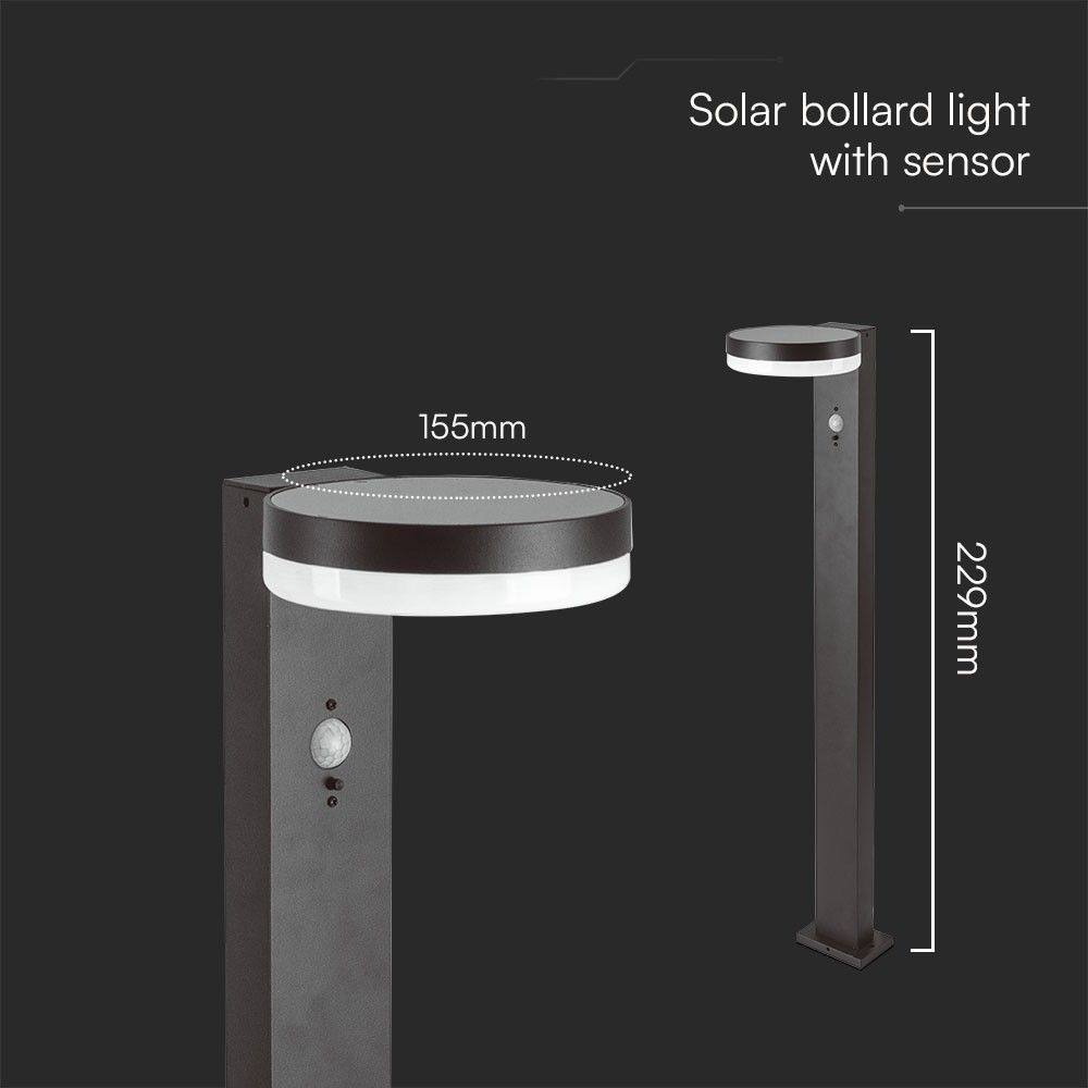 Φωτιστικό Κολωνάκι Κήπου LED 5.5W 3000Κ Ηλιακό με Αισθητήρα PIR IP54 Μαύρου Χρώματος V-TAC – 23399VT