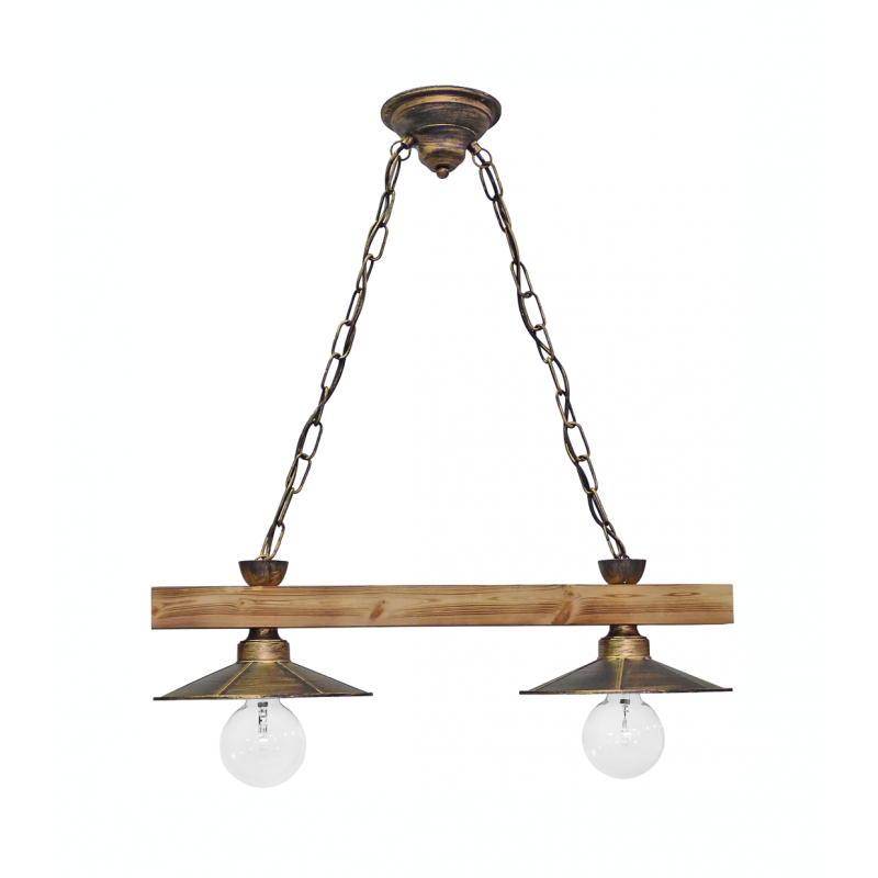 Κρεμαστό φωτιστικό 2/φωτο με ξύλινη ράγα και αλυσίδα R-150RAGA 2/L CHAIN