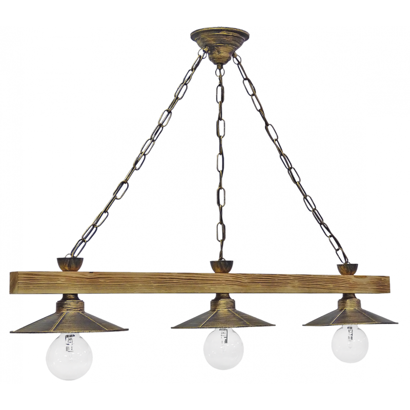 Κρεμαστό φωτιστικό 3/φωτο με ξύλινη ράγα και αλυσίδα R-150RAGA 3/L CHAIN