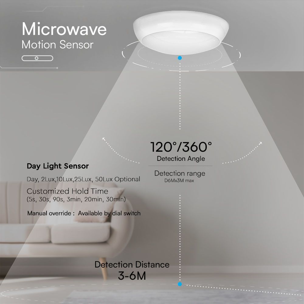 Φωτιστικό Οροφής 8W/16W/20W LED με Ανιχνευτή Κίνησης SAMSUNG 3IN1 IP65 V-TAC – 804-24