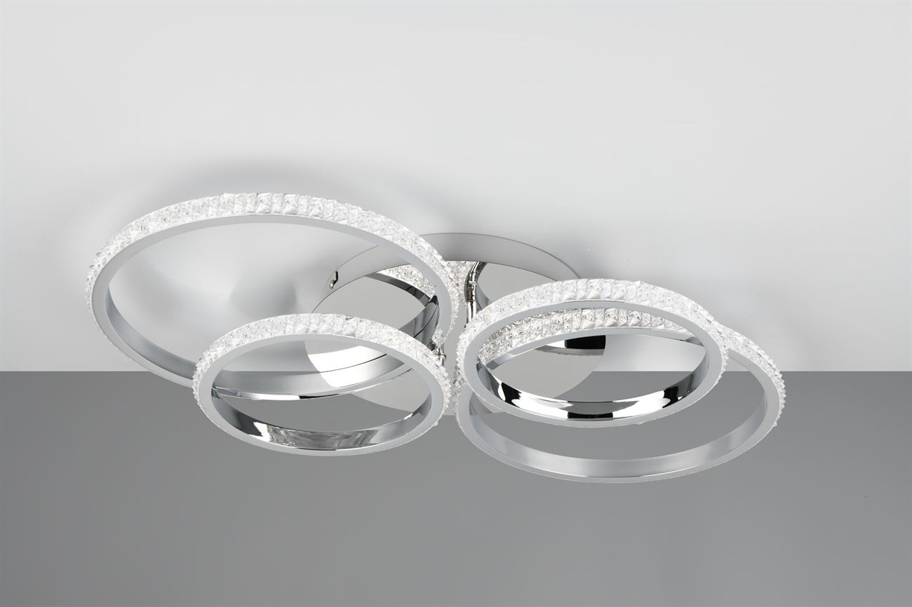 Τα φωτιστικά οροφής με γεωμετρικά σχήματα κάνουν μια εντυπωσιακή δήλωση! Οι περιστρεφόμενες μονάδες του φωτιστικού CIRES ανοίγουν ένα ευρύ φάσμα επιλογών σχεδίασης και επιτρέπουν δημιουργικές ρυθμίσεις. Με τον ενσωματωμένο ροοστάτη SWITCH, μπορούν επίσης να επιλεγούν τρία επίπεδα φωτεινότητας (100%, 50% και 25%) μέσω του συμβατικού διακόπτη φωτισμού για να δημιουργήσετε διαφορετικές διαθέσεις φωτισμού. Ο σχεδιασμός χρωμίου με διαφανή κρυστάλλινα εφέ προσθέτει μια κομψή πινελιά στο σπίτι σας. Το φωτιστικό διαθέτει επίσης σύγχρονη τεχνολογία LED, η οποία χαρακτηρίζεται από υψηλή ποιότητα φωτισμού και ενεργειακή απόδοση. Σε σύγκριση με τις συμβατικές πηγές φωτός αλογόνου, μπορεί να εξοικονομηθεί έως και 80% του ενεργειακού κόστους. Με τις πηγές φωτός LED, επωφεληθείτε επίσης από τη μεγάλη διάρκεια ζωής και τη χαμηλή παραγωγή θερμότητας προστατεύοντας παράλληλα το περιβάλλον.