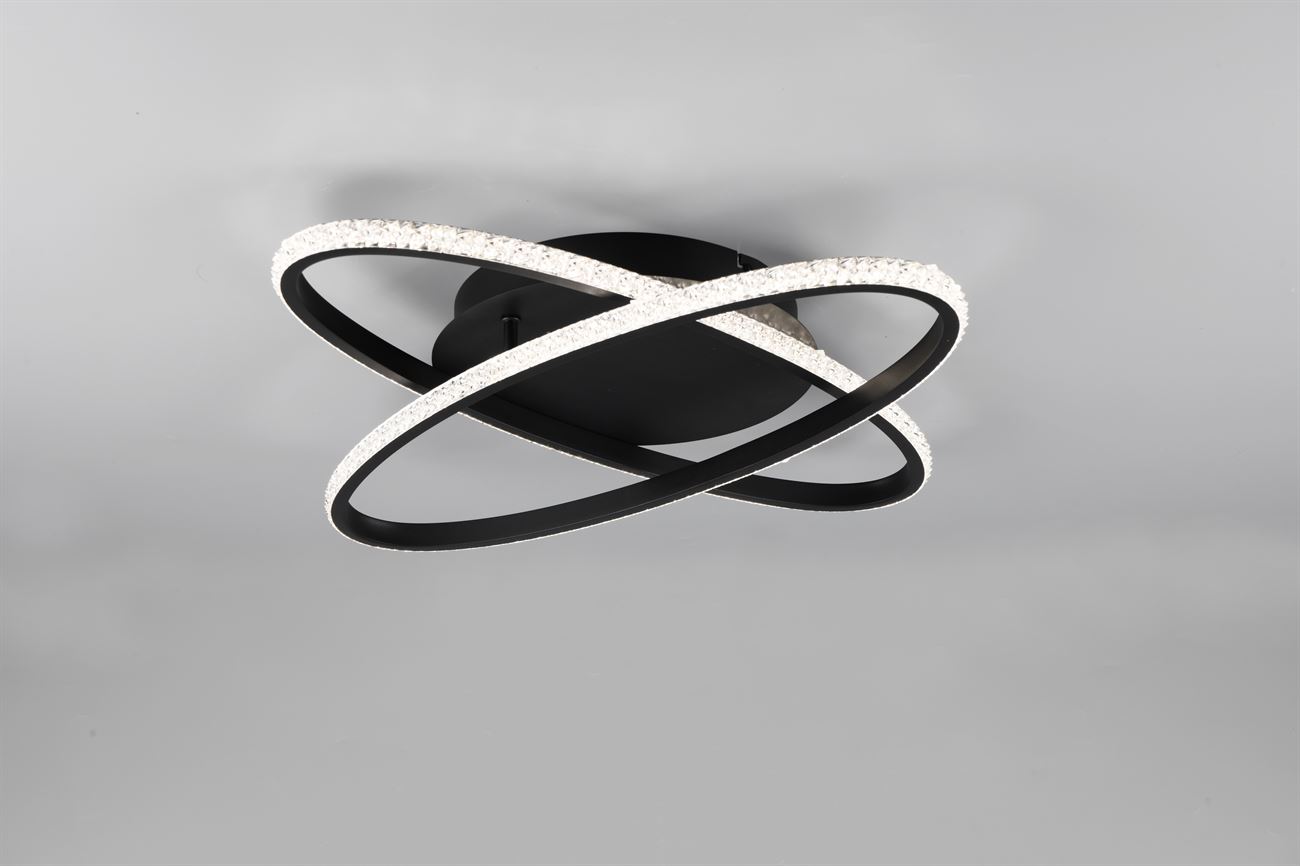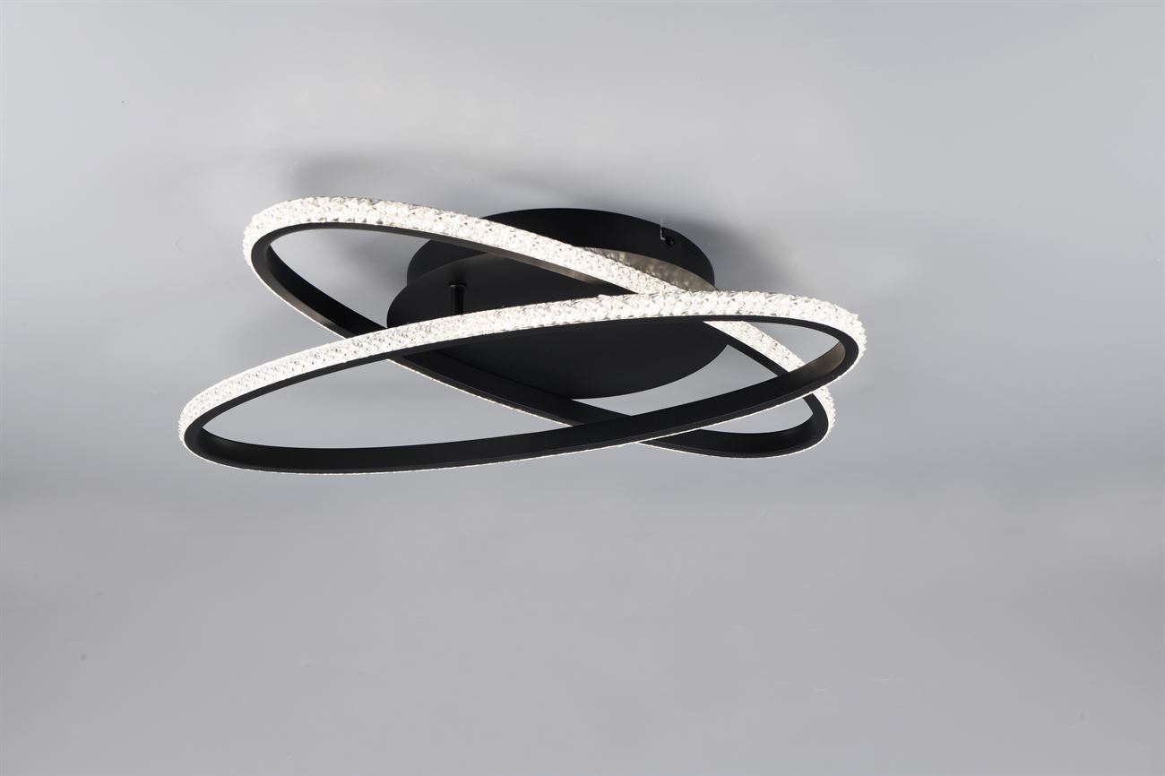 Δύο οβάλ σχήματα αποτελούν τη βάση του φωτιστικού οροφής LANE. Τα κινητά στοιχεία και η επιλογή ρύθμισης της φωτεινότητας από 100% σε 50% και 25%, που γίνονται εφικτά από τον συμβατικό διακόπτη φώτων, δημιουργούν ατμοσφαιρικά εφέ φωτισμού στην οροφή σας με εξατομικευμένη γοητεία. Το ασυνήθιστο σχέδιο σε ματ μαύρο και με κρυστάλλινο κάλυμμα δημιουργεί επίσης ένα εντυπωσιακό στοιχείο στο σαλόνι σας. Το φωτιστικό διαθέτει επίσης σύγχρονη τεχνολογία LED, η οποία χαρακτηρίζεται από υψηλή ποιότητα φωτισμού και ενεργειακή απόδοση. Σε σύγκριση με τις συμβατικές πηγές φωτός αλογόνου, μπορεί να εξοικονομηθεί έως και 80% του ενεργειακού κόστους. Με τις πηγές φωτός LED, επωφεληθείτε επίσης από τη μεγάλη διάρκεια ζωής και τη χαμηλή παραγωγή θερμότητας προστατεύοντας παράλληλα το περιβάλλον.