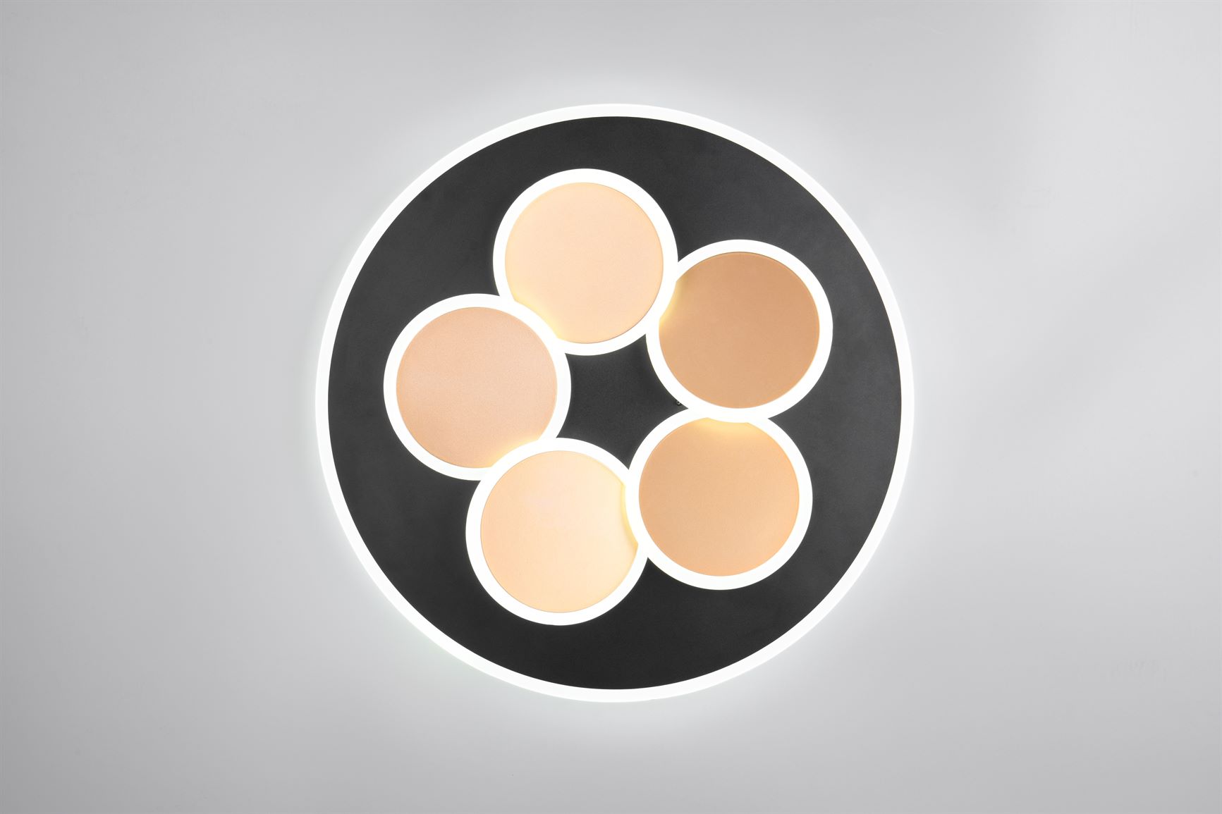 Το φωτιστικό οροφής MANDALA είναι ένα πραγματικό έργο τέχνης! Οι πέντε μικρές φωτισμένες κυκλικές περιοχές και ο εξωτερικός φωτισμένος δακτύλιος δίνουν σε αυτό το έργο τέχνης ένα ευχάριστο βάθος και ένα εντυπωσιακό αποτέλεσμα wow. Μπορείτε να προσαρμόσετε τη φωτεινότητα και το χρώμα του φωτός όπως απαιτείται χρησιμοποιώντας ένα τηλεχειριστήριο. Εναλλακτικά, είναι δυνατή η ρύθμιση της φωτεινότητας στο 100%, 50% και 25% χρησιμοποιώντας έναν συμβατικό διακόπτη φώτων. Ο νυχτερινός φωτισμός και η λειτουργία μνήμης συμπληρώνουν τέλεια το φως. Η μοντέρνα αλληλεπίδραση των ματ μαύρου και χρυσού χρώματος υπογραμμίζει την ιδιαίτερη και κομψή σχεδίαση του φωτιστικού. Το φωτιστικό διαθέτει επίσης σύγχρονη τεχνολογία LED, η οποία χαρακτηρίζεται από υψηλή ποιότητα φωτισμού και ενεργειακή απόδοση. Σε σύγκριση με τις συμβατικές πηγές φωτός αλογόνου, μπορεί να εξοικονομηθεί έως και το 80% του ενεργειακού κόστους. Οι πηγές φωτός LED έχουν επίσης μεγάλη διάρκεια ζωής, παράγουν λιγότερη θερμότητα και προστατεύουν το περιβάλλον.