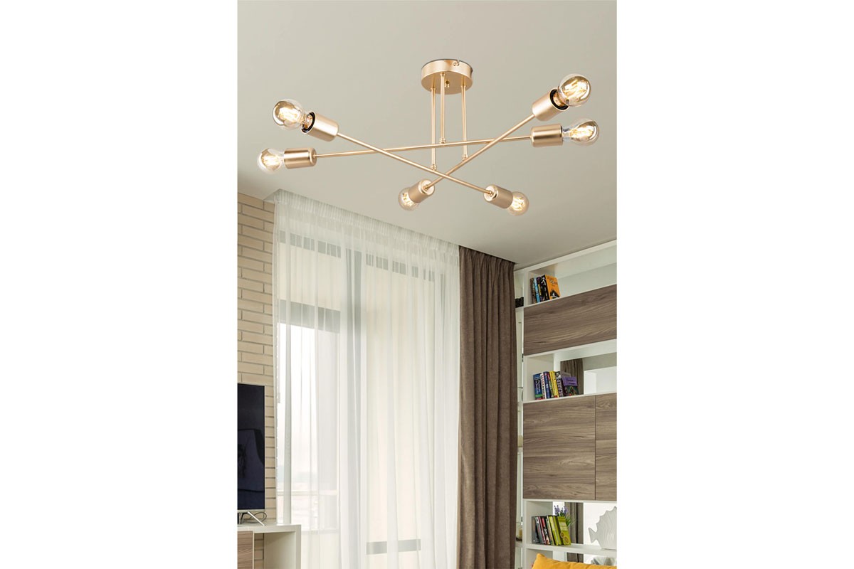 Μοντέρνο μεταλλικό φωτιστικό, ιδανικό για τη διακόσμηση σύγχρονων επαγγελματικών και οικιακών χώρων. Κατασκευασμένο με εξαιρετική ποιότητα, σε χρυσό χρώμα και με ένα εξαιρετικό design που το κάνει να ξεχωρίζει.