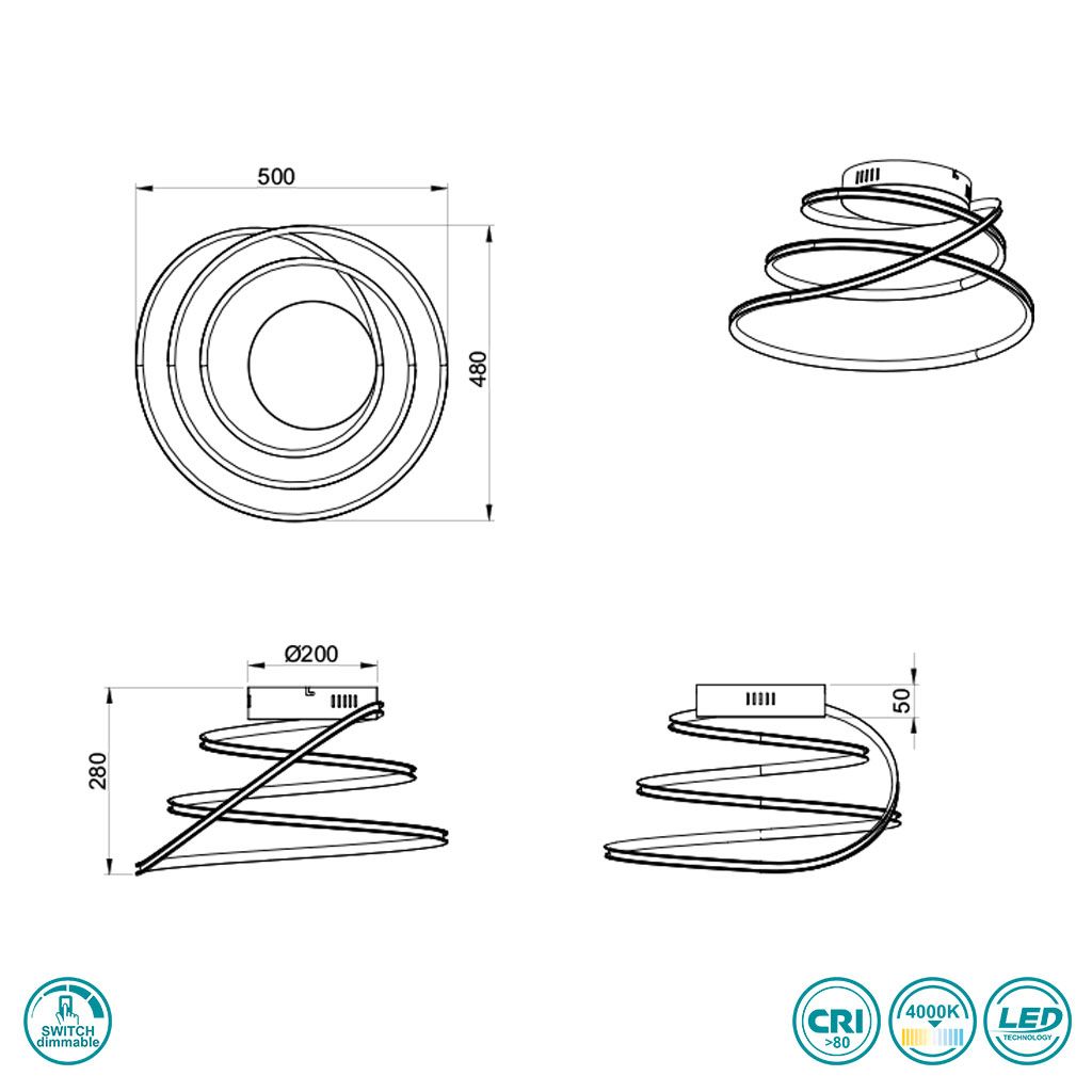 4000K – IP20 – Not suitable for external dimmer – Dimmable via switch
