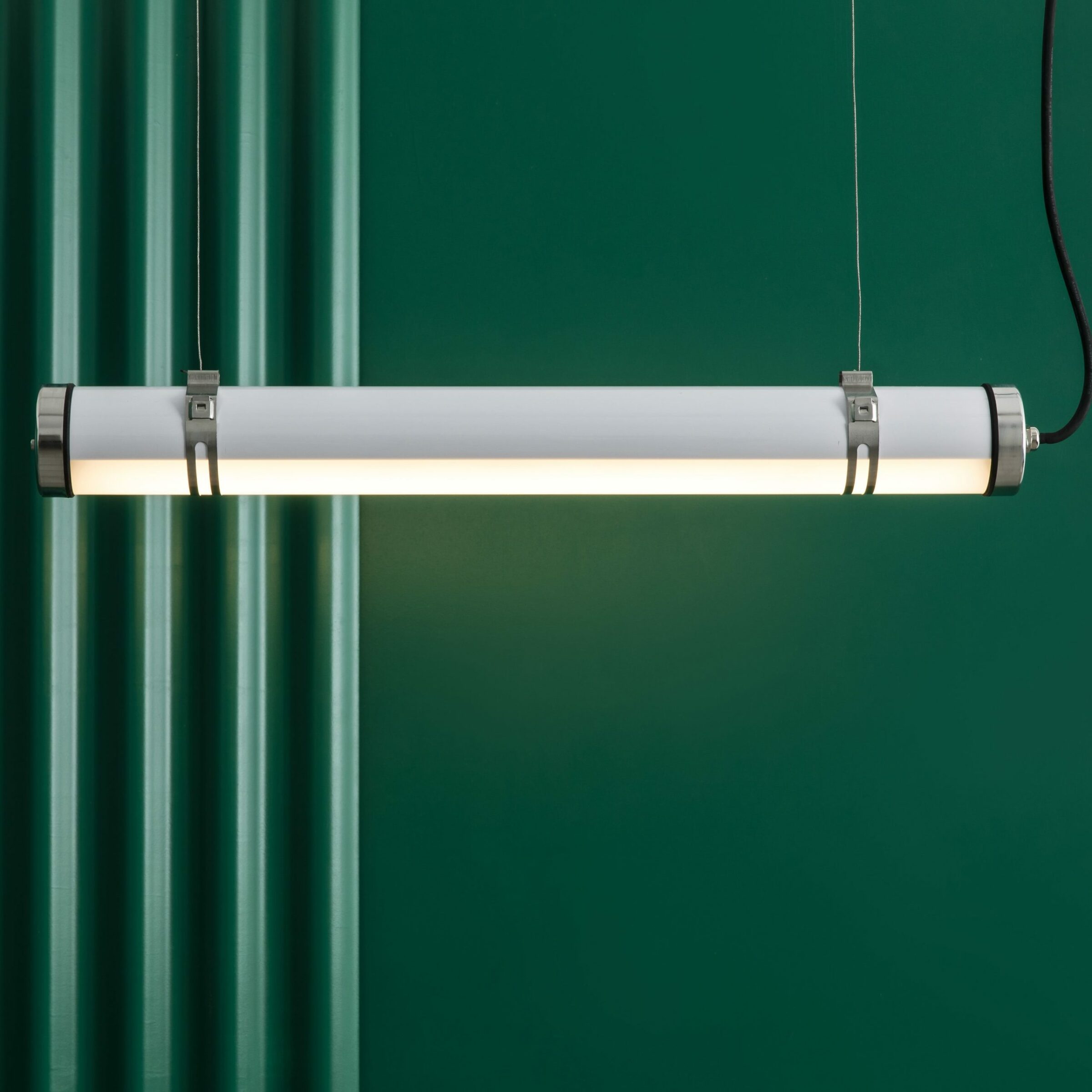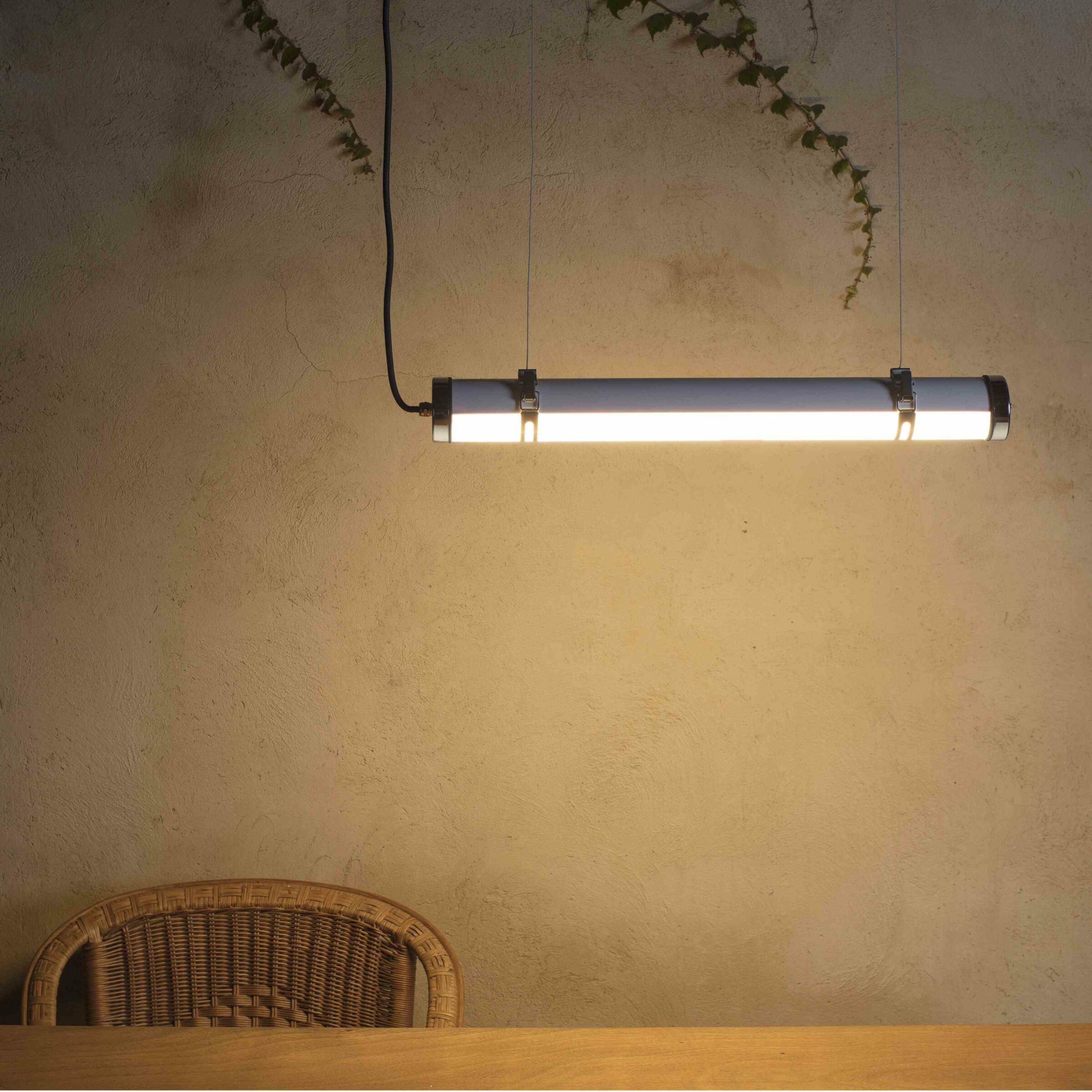 Το SCUBA είναι ένα κρεμαστό φωτιστικό από ανοξείδωτο ατσάλι και διατίθεται σε δύο μεγέθη. Είναι σχεδιασμένο για εξωτερικό αλλά επίσης χωρά σε πολλούς εσωτερικούς χώρους. Έχει IP66, το οποίο του παρέχει υψηλή προστασία έναντι βροχής και στερεών σωμάτων και αντοχή σε κραδασμούς του IK10. Βιομηχανικού τύπου, η δέσμη φωτός προβάλλεται μέσω ενός μέρους του σωλήνα. Στην αρχή, είναι εγκατεστημένο απευθείας στην οροφή, αλλά δεν έχει αξεσουάρ ροζέτας (Αναφ. 75755).