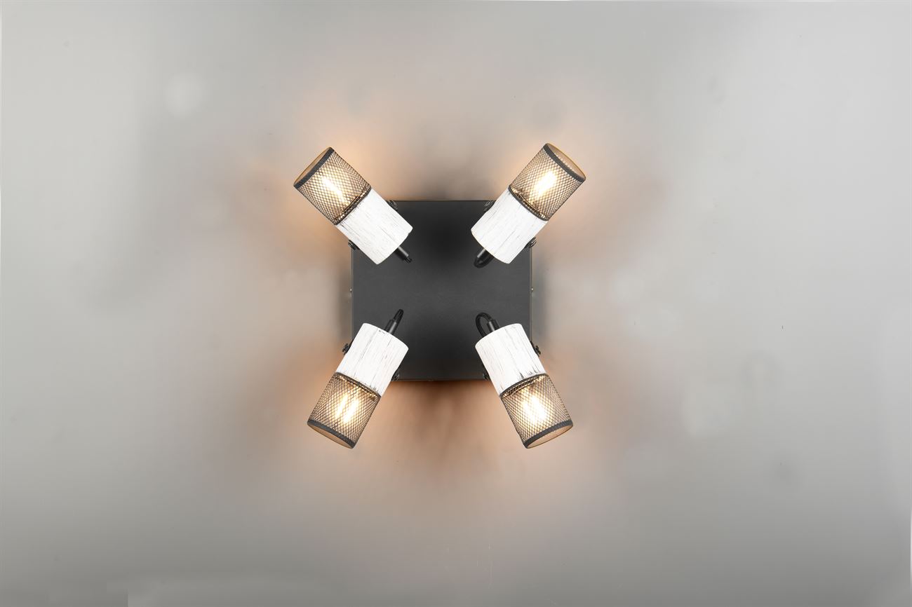 Ο μοντέρνος συνδυασμός μετάλλου και ξύλου φαίνεται διαχρονικός και είναι απολύτως στην τάση. Ο συνδυασμός με φυσικά υλικά έχει γίνει αναπόσπαστο μέρος των σύγχρονων χώρων διαβίωσης και δημιουργεί επίσης μια ζεστή ατμόσφαιρα. Το TOSH 4 σημείων είναι επομένως η ιδανική επιλογή για τη ρύθμιση μεμονωμένων τόνων φωτισμού στο διάδρομο, το σαλόνι ή το υπνοδωμάτιο. Ο προβολέας μπορεί να ρυθμιστεί ξεχωριστά για στοχευμένο φωτισμό έμφασης. Το μαύρο μέταλλο μαζί με τα ξύλινα στοιχεία σε αντίκες λευκό μπορούν να βρεθούν σε μοντέρνα και μινιμαλιστικά στυλ επίπλων. Η χρήση πηγών φωτός LED συνιστάται για φωτισμό εξοικονόμησης ενέργειας. Αυτές είναι μια ιδανική εναλλακτική λύση σε σχέση με τις συμβατικές πηγές φωτός αλογόνου και προσφέρουν υψηλή ποιότητα φωτός και εξοικονόμηση ενέργειας έως και 80%. Με τις πηγές φωτός LED, επωφεληθείτε επίσης από τη μεγάλη διάρκεια ζωής και τη χαμηλή παραγωγή θερμότητας προστατεύοντας παράλληλα το περιβάλλον.