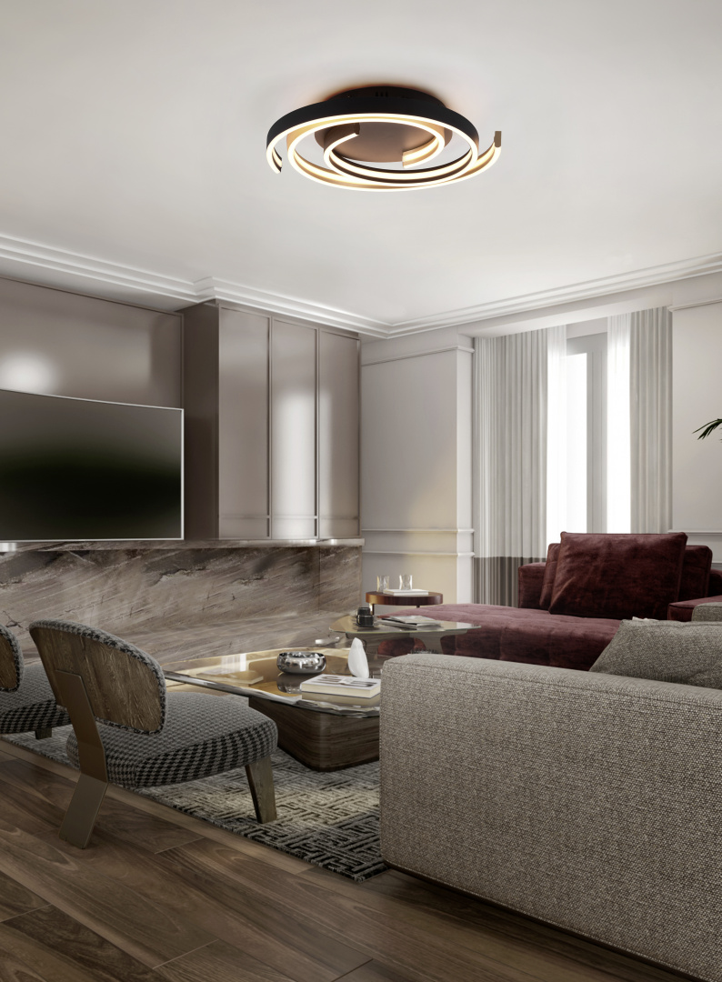 Φωτιστικό Οροφής Trio Lighting CAYA 1x SMD, 58W · 6800lm, 2300+3000+4000K Ορείχαλκος Ματ Μεταλλικό, Step Dimmable, Χρώματα Ρυθμιζόμενα στο Φωτιστικό– 641910208