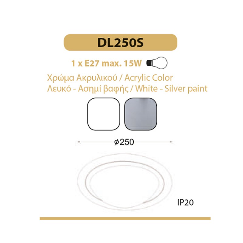Φωτιστικό Πλαφονιέρα 1xΕ27 Στρογγυλό Ακρυλικό Λευκό Πλαστικό Χρώμιο ACA – DL250S