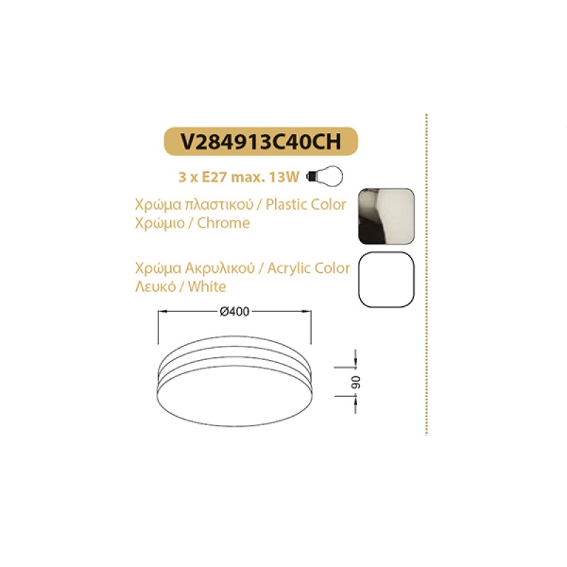 Φωτιστικό Πλαφονιέρα 3xΕ27 Στρογγυλό Ακρυλικό Λευκό Πλαστικό Χρώμιο ACA – V284913C40CH