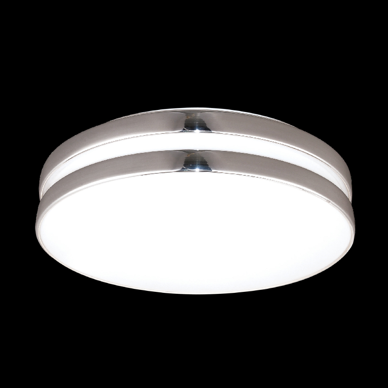 Round acrylic ceiling / wall lighting fi xture with chromed /silver paint details .
