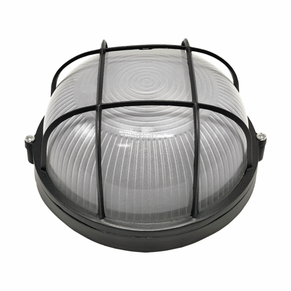 Φωτιστικό Τοίχου 1xE27 Χελώνα Αλουμινίου ø190 Στρογγυλή με Πρισματικό Γυαλί & Πλέγμα Γκρι IP45 ACA – HI5011GDS