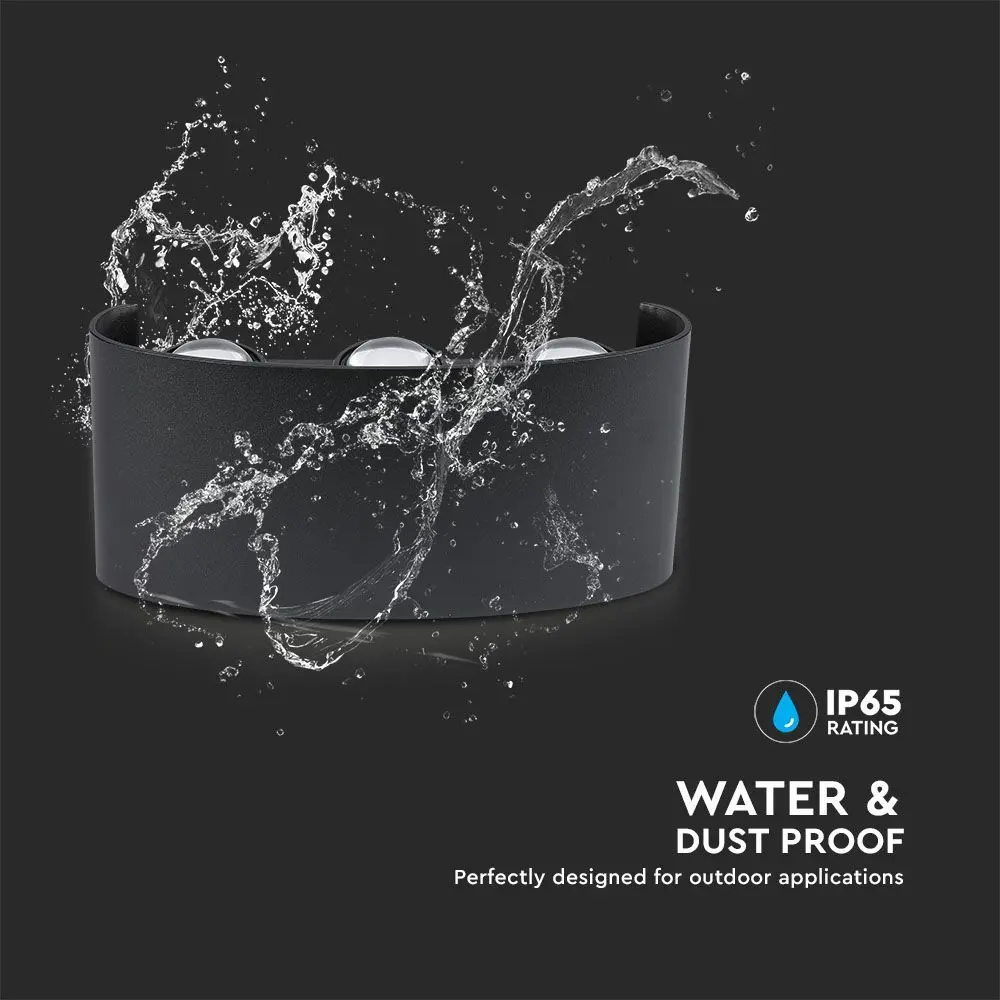 τοίχου 5W V-Tac VT-846 LED με 6 πηγές φωτός, τεχνολογία SMD LED, βαθμός προστασίας IP65 και περίβλημα από μαύρο αλουμίνιο. Περιλαμβάνεται κιτ εγκατάστασης και στερέωσης.