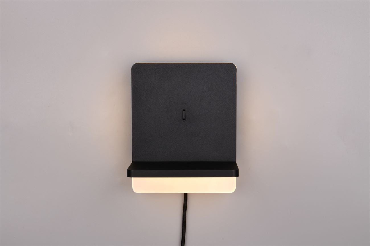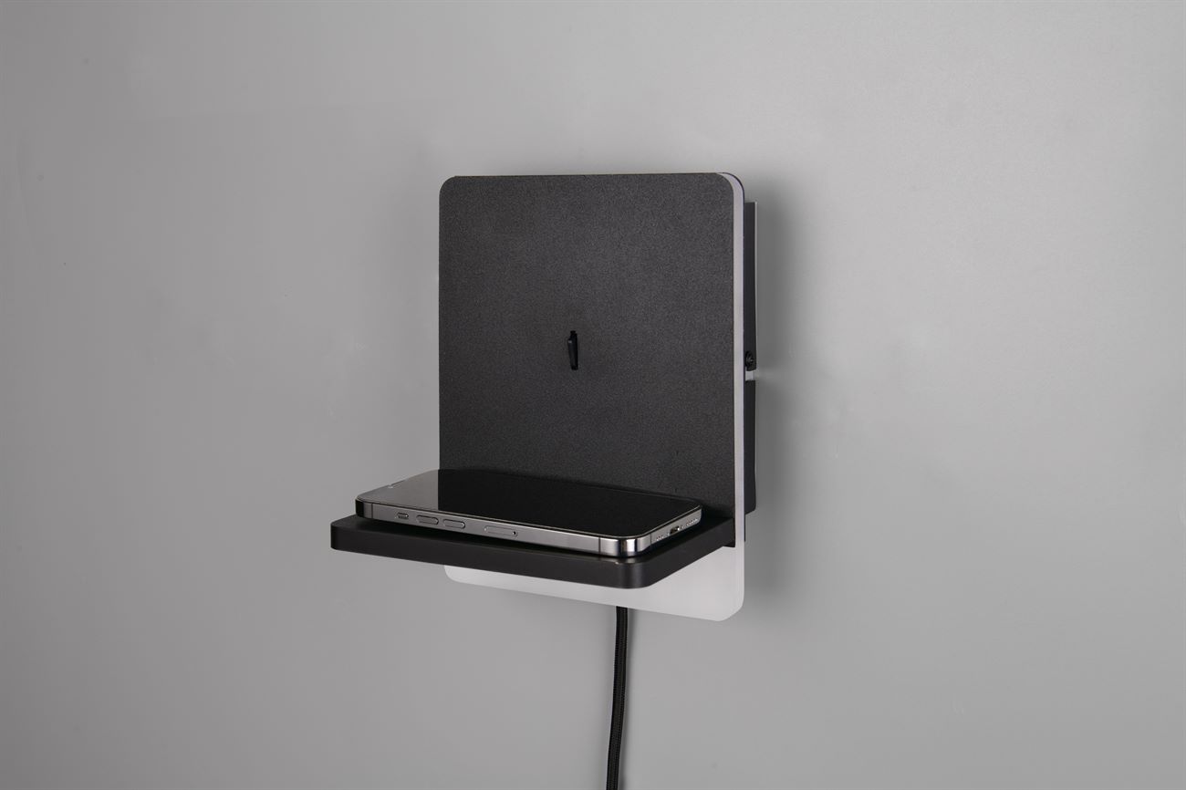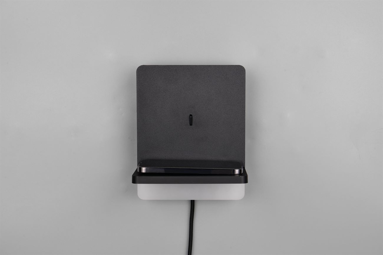 Φωτιστικό τοίχου FAIRFIELD – για μια άνετη αίσθηση γύρω από το κρεβάτι! Ο απλός σχεδιασμός και το έμμεσο φως του συμβάλλουν στη χαλάρωση στην κρεβατοκάμαρα και παρέχουν ζεστή φωτεινότητα, ιδανική για χαλαρωτικές ώρες ανάγνωσης το βράδυ. Με τον ενσωματωμένο σταθμό επαγωγικής φόρτισης, το φως επιτρέπει την εύκολη φόρτιση συμβατών smartphone. Εναλλακτικά, προσφέρει σύνδεση USB και USB-C με δυνατότητα φόρτισης. Χάρη στη λειτουργία FLEXconnect, το φωτιστικό τοίχου είναι εξαιρετικά ευέλικτο – μπορεί να λειτουργήσει τόσο μέσω διακόπτη όσο και χωρίς καλώδιο μέσω της σταθερής σύνδεσης. Σε αυτή την περίπτωση, η λειτουργία γίνεται μέσω ενός συμβατικού διακόπτη τοίχου. Ο ενσωματωμένος ροοστάτης SWITCH καθιστά δυνατή τη ρύθμιση του FAIRFIELD σε τρία επίπεδα φωτεινότητας (100 %, 50 % και 25 %) και την προσαρμογή του στις ανάγκες σας. Ο απλός σχεδιασμός σε μαύρο ματ εξασφαλίζει ότι το φως συνδυάζεται εύκολα σε κάθε εσωτερικό χώρο. Το φωτιστικό διαθέτει επίσης σύγχρονη τεχνολογία LED, η οποία χαρακτηρίζεται από υψηλή ποιότητα φωτισμού και ενεργειακή απόδοση. Σε σύγκριση με τις συμβατικές πηγές φωτός αλογόνου, μπορεί να εξοικονομηθεί έως και το 80% του ενεργειακού κόστους. Οι πηγές φωτός LED έχουν επίσης μεγάλη διάρκεια ζωής, παράγουν λιγότερη θερμότητα και προστατεύουν το περιβάλλον.