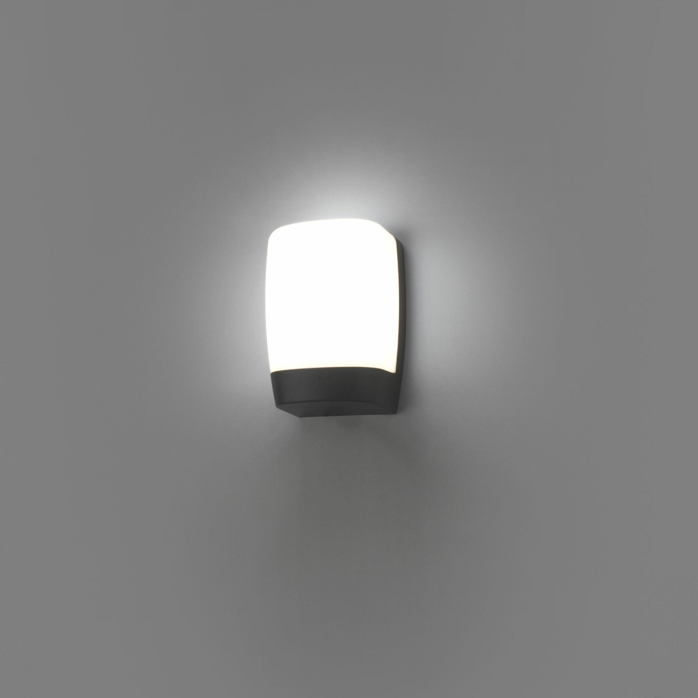 Σκούρο γκρι φωτιστικό τοίχου για φωτισμό κήπου. Το POL διαθέτει ένα ευρύ διαχύτη για τη διανομή του φωτός που προβάλλει το LED. Ιδανικό για χώρους διέλευσης και μπαλκόνια.