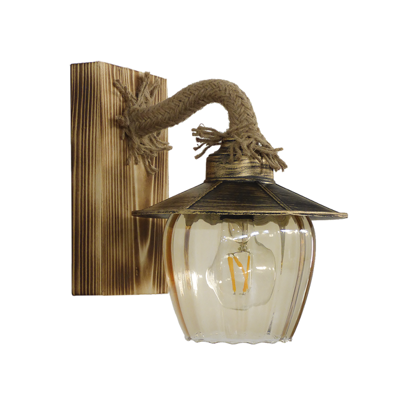 Απλίκα επιτοίχια ,ξύλινη με σχοινί ,πλαστικό καπέλο και γυαλί μελί R-98AP