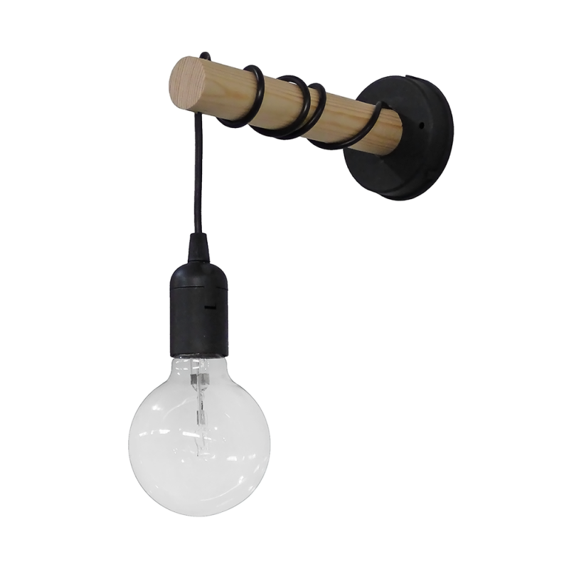 Φωτιστικό τοίχου / απλίκα ξύλινη με καλώδιο Μαύρο & ντουί Ε/27