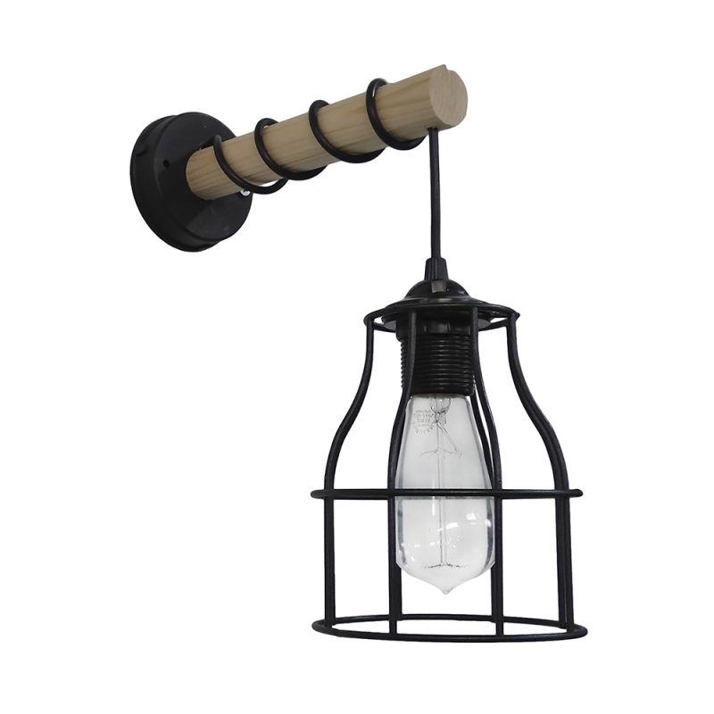 Φωτιστικό τοίχου / απλίκα ξύλινη με καλώδιο Μαύρο & μεταλλικό πλέγμα Μαύρο