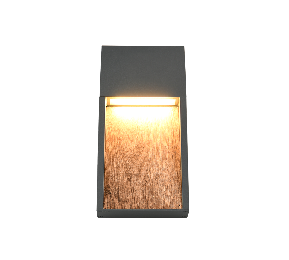 Τα φώτα εξωτερικού χώρου της σειράς SALMON είναι μαγευτικά σε όλη τη γραμμή. Ο τέλειος συνδυασμός έμμεσου φωτός, λειτουργικότητας και κομψής εμφάνισης κάνει αυτά τα φώτα ένα απαραίτητο στοιχείο στον εξωτερικό σας χώρο. Τοποθετημένο δίπλα στην πόρτα της εισόδου ή στην πρόσοψη του σπιτιού, το φωτιστικό τοίχου παρέχει ένα ελκυστικό φως για κάθε νεοφερμένο και συμβάλλει στην ασφάλεια. Χάρη στον βαθμό προστασίας IP44, το φως είναι εξαιρετικά ευέλικτο και μπορεί επίσης να χρησιμοποιηθεί σε υπόγεια ή γκαράζ. Ο συνδυασμός χρωμάτων ανθρακί και αναπαραγωγής ξύλου είναι αυτή τη στιγμή στην τάση και δίνει στον εξωτερικό χώρο σας μια οπτική αναβάθμιση. Το φωτιστικό διαθέτει επίσης σύγχρονη τεχνολογία LED, η οποία χαρακτηρίζεται από υψηλή ποιότητα φωτισμού και ενεργειακή απόδοση. Σε σύγκριση με τις συμβατικές πηγές φωτός αλογόνου, μπορεί να εξοικονομηθεί έως και το 80% του ενεργειακού κόστους. Με τις πηγές φωτός LED, επωφεληθείτε επίσης από τη μεγάλη διάρκεια ζωής και τη χαμηλή παραγωγή θερμότητας προστατεύοντας παράλληλα το περιβάλλον.