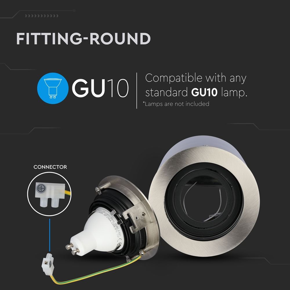Φωτιστικό – Βάση Σποτ GU10 V-TAC Εξωτερική Στρογγυλή Νίκελ Ρυθμιζόμενη – 3629