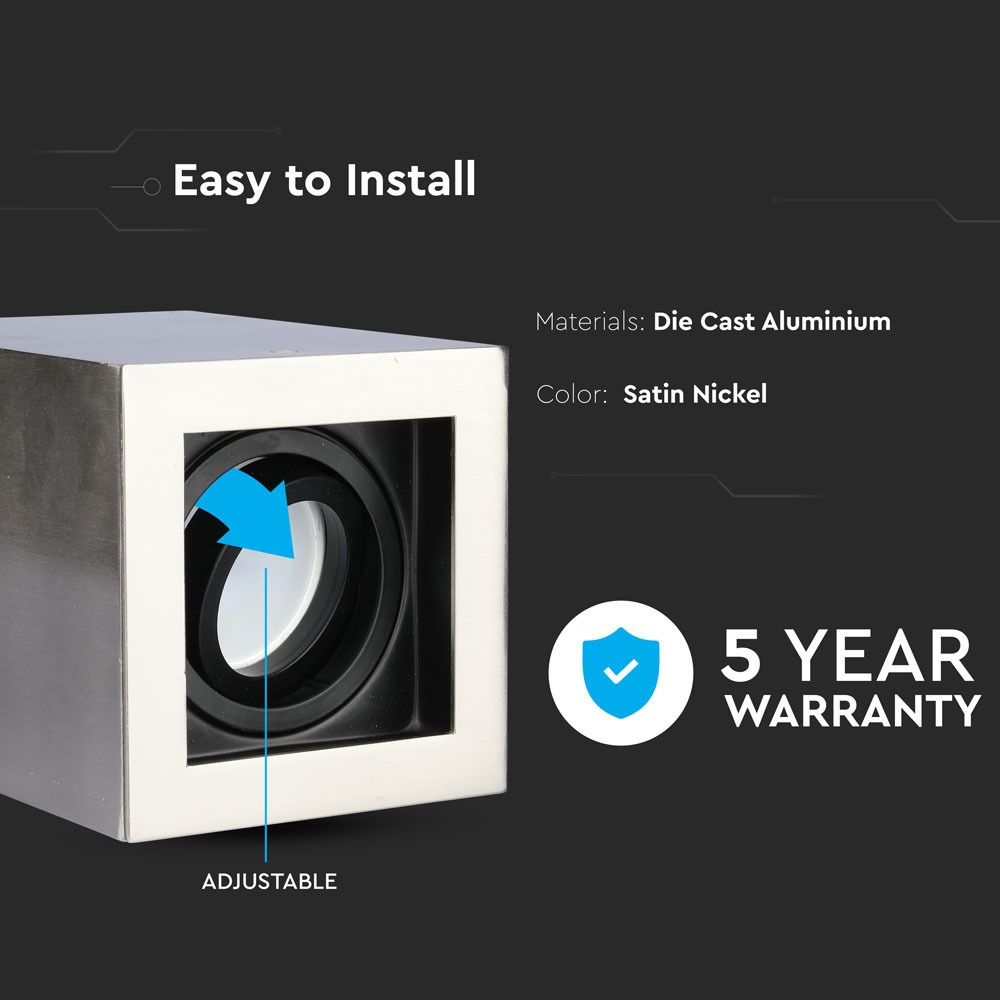 Φωτιστικό – Βάση Σποτ GU10 V-TAC Εξωτερική Τετράγωνη Νίκελ Ρυθμιζόμενη – 3632