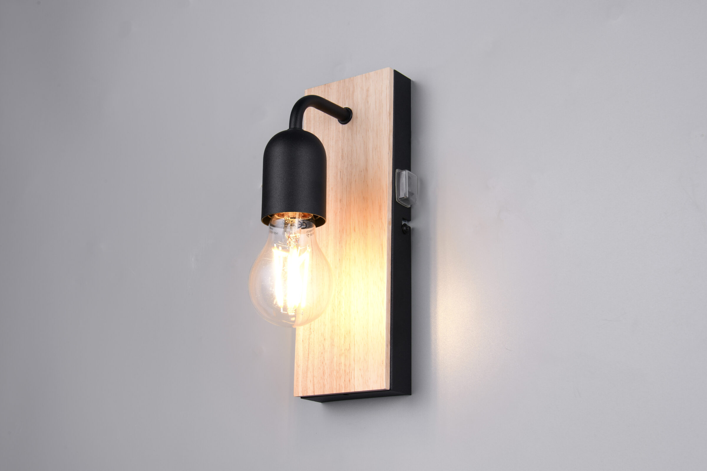 Φωτιστοικό Τοίχου Φυσικό Ξύλο & Μαύρο 1xE27 IP44 με Διακόπτη Trio Lighting – 284470132