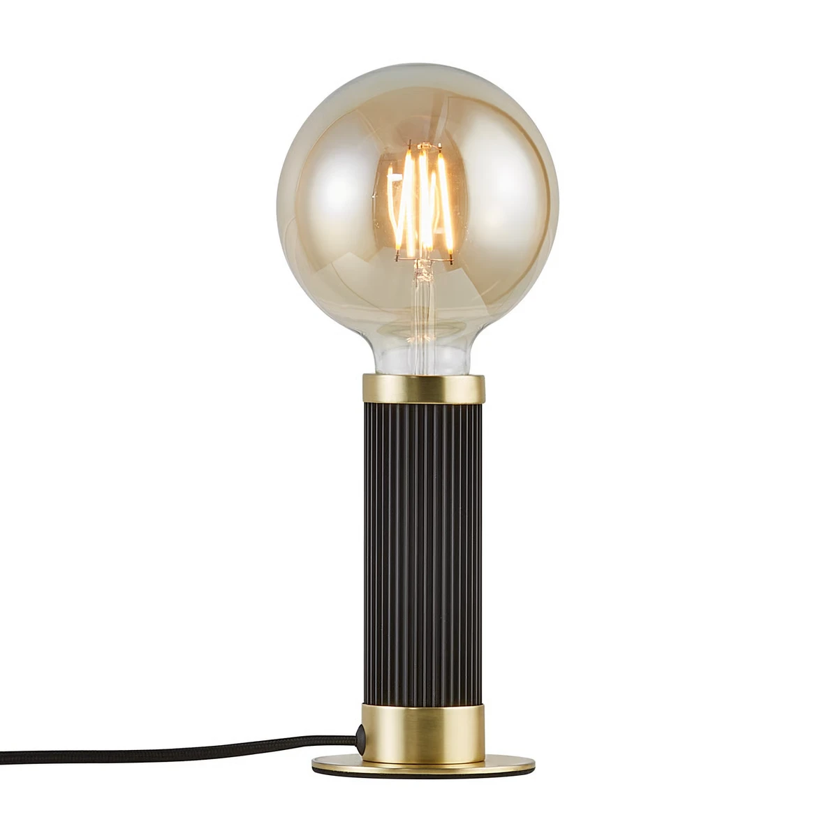 Κομψό επιτραπέζιο φωτιστικό Nordlux Galloway 2011075003 σε μαύρο με λεπτομέρειες από μπρούντζο (brass) και βάση E27 για διακοσμητική λάμπα — ιδανικό για καθιστικά, γραφεία, κομοδίνα και μοντέρνους εσωτερικούς χώρους.