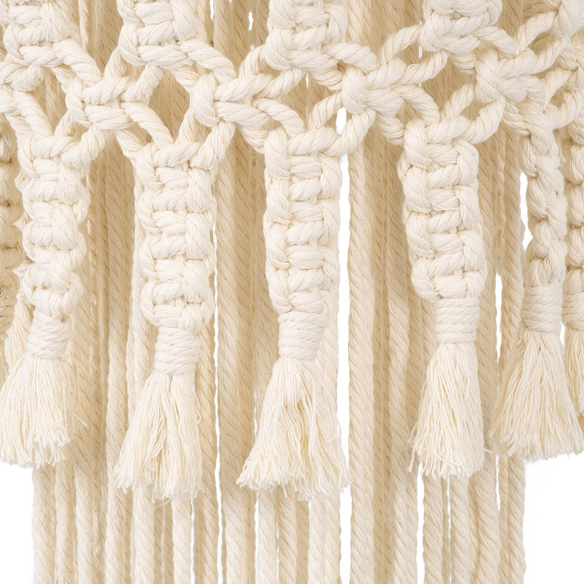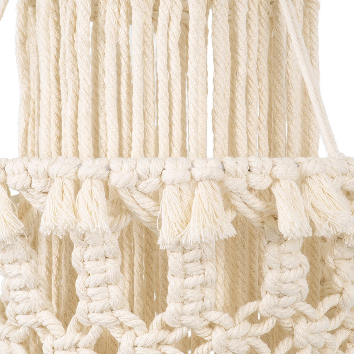 GloboStar® 36200 ETHIOPIA Καπέλο Φωτιστικού Boho – Μακραμέ Πλεκτό Χειροποίητο Μπεζ Υφασμάτινο με Σχοινί Φ30 x Υ90cm