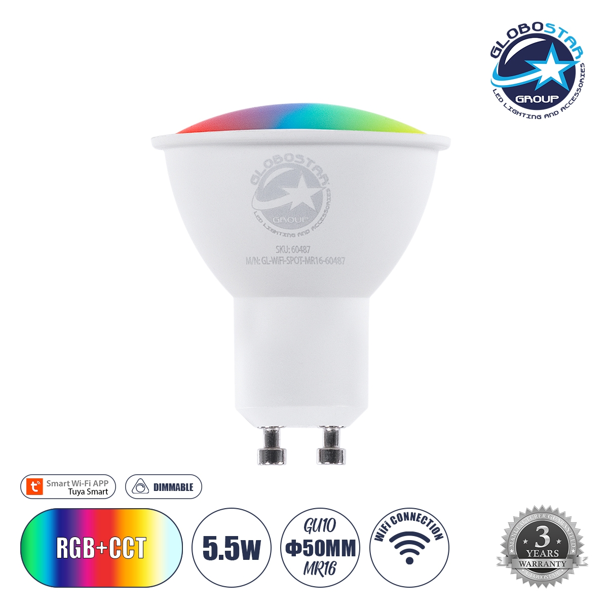 Light Color – Χρώμα Φωτισμού : Multi Color RGBW+WW ( Changeable by Tuya APP ) – Πολύχρωμο RGBW+WW ( Ρυθμιζόμενο μέσω Smart Εφαρμογής Tuya )