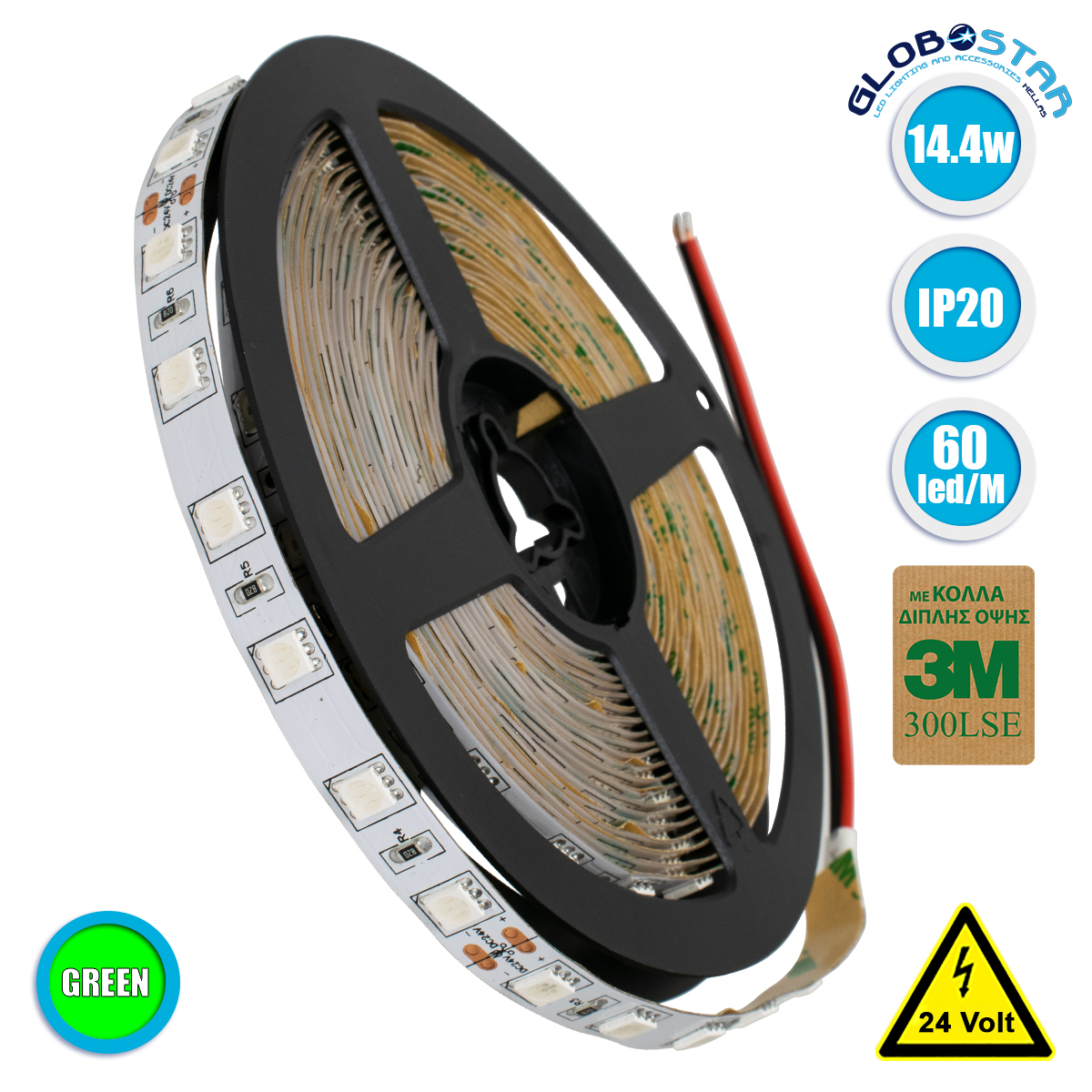 GloboStar® 70225 Ταινία LED SMD 5050 5m 14.4W/m 60LED/m 800lm/m 120° DC 24V IP20 Πράσινο – 5 Χρόνια Εγγύηση