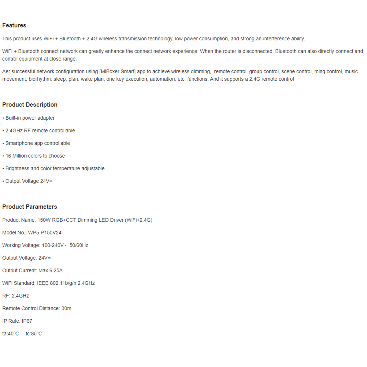 Max Load Watt – Μέγιστο Φορτίο Watt : 24V/150W