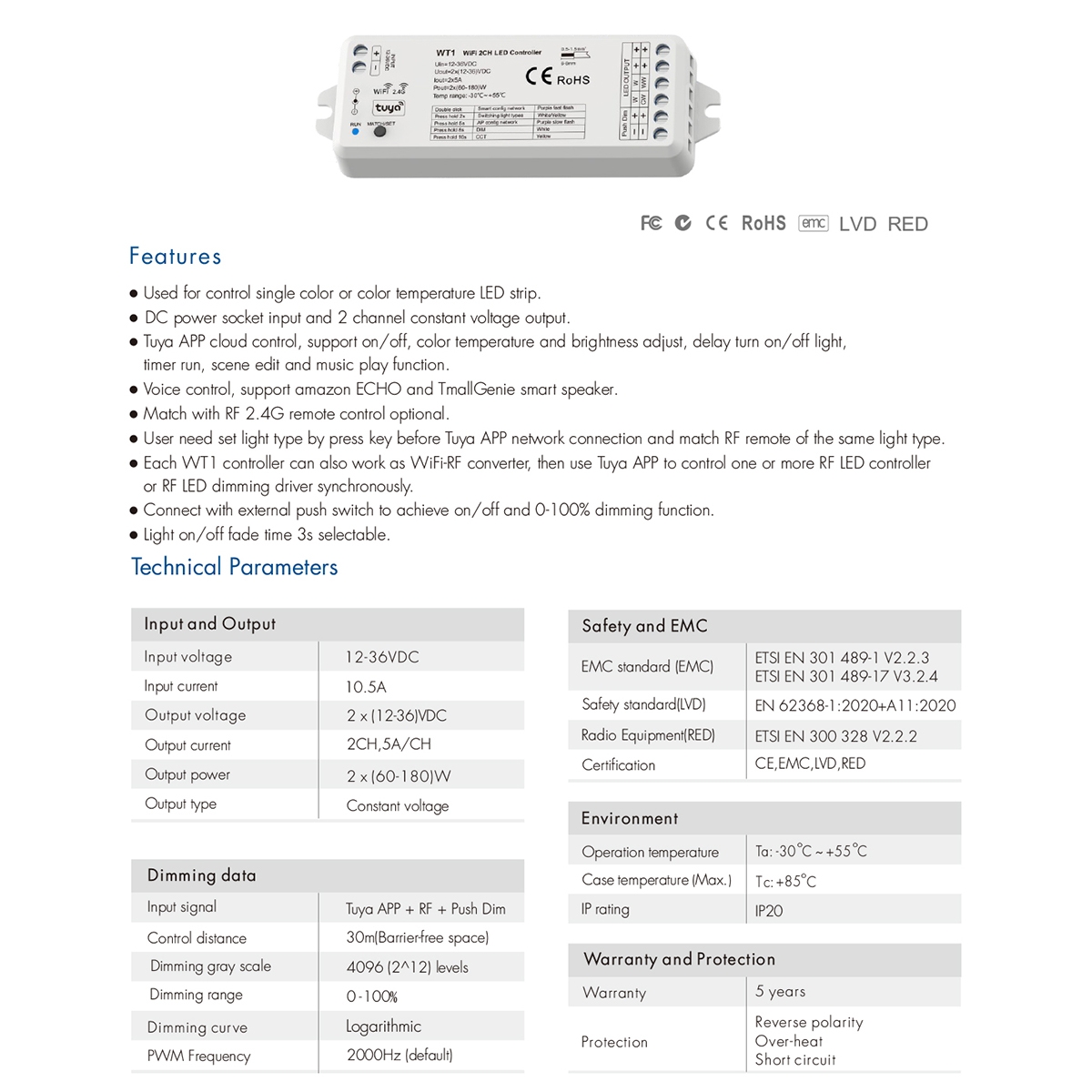 Product Category – Κατηγορία/Τύπος Προϊόντος : CCT Double Color WiFi Controller for LED Products – Ελεγκτής WiFi για Δίχρωμα LED Προϊόντα