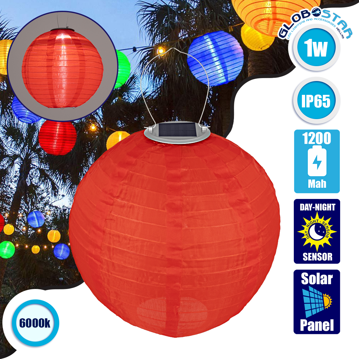 Το GloboStar® 71592 Αυτόνομο Ηλιακό Φωτιστικό Υφασμάτινη Κόκκινη Μπάλα Φ30cm LED SMD 1W 100lm με Ενσωματωμένη Μπαταρία 1200mAh – Φωτοβολταϊκό Πάνελ με Αισθητήρα Ημέρας-Νύχτας Αδιάβροχο IP65 Ψυχρό Λευκό 6000K ήρθε να δώσει μια ανάλαφρη νότα στον κήπο, το μπαλκόνι ή την βεράντα σας δίνοντας στα πάρτι και τις εκδηλώσεις σας μια ξεχωριστή ατμόσφαιρα.