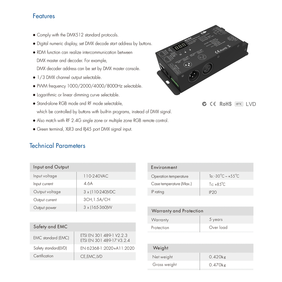 Product Category – Κατηγορία/Τύπος Προϊόντος : DC DMX & RDM DIMMER DECODER for LED Products – DC DMX & RDM Ροοστάτης για LED Προϊόντα