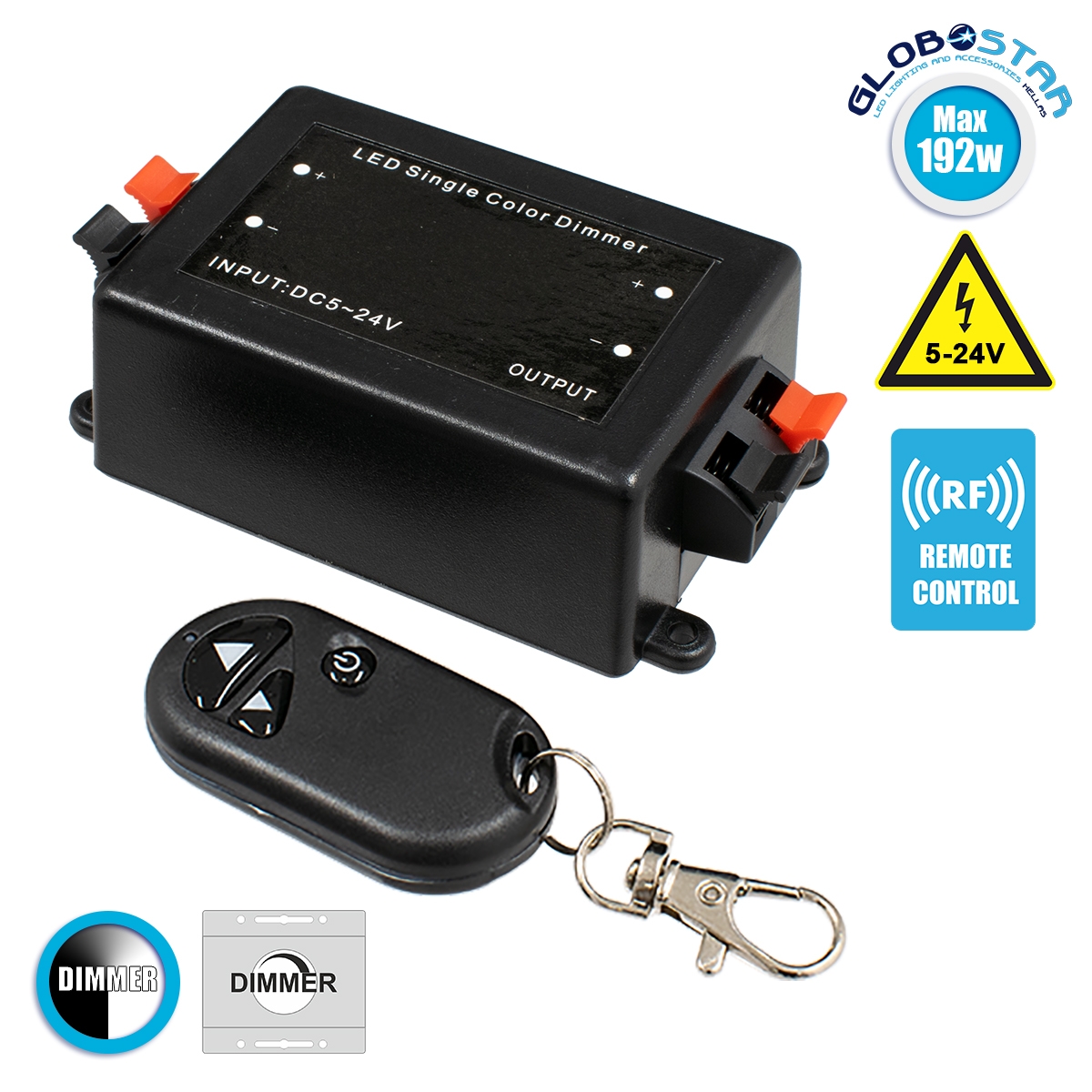Ασύρματο Dimmer 5-12-24 Volt 8 Ampere με μέγιστο φορτίο στα 5 Volt 40 Watt, 12 Volt 96 Watt και στα 24 Volt 192 Watt κατάλληλο για όλους τους τύπους προϊόντων 5-12-24 Volt.