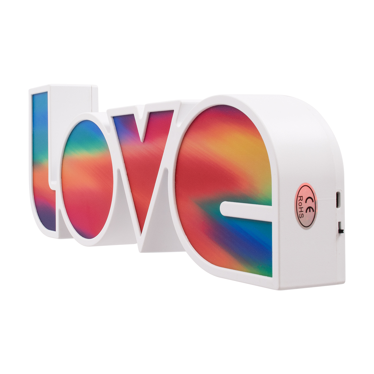 GloboStar® 76553 Μοντέρνο Επιτραπέζιο Διακοσμητικό Φωτιστικό LED Σήμανσης MULTICOLOR LOVE 2W με Διακόπτη On/Off & Καλώδιο Τροφοδοσίας USB – Μπαταρίας 3xAAA (Δεν Περιλαμβάνονται) Ψυχρό Λευκό 6000K