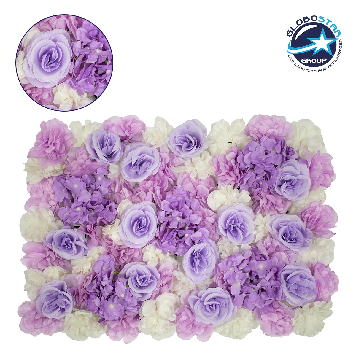 GloboStar® 78305 Συνθετικό Πάνελ Φυλλωσιάς – Κάθετος Κήπος Τριαντάφυλλο – Ορτανσία – Βιολέτα Μ60 x Υ40 x Π7cm