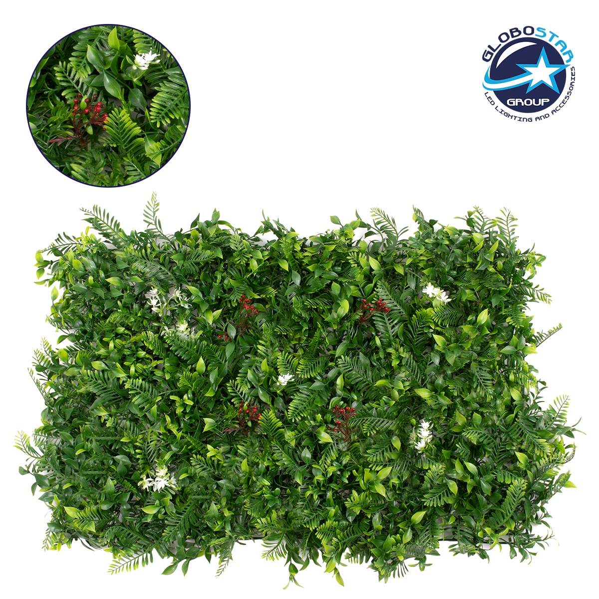 GloboStar® 78407 Συνθετικό Πάνελ Φυλλωσιάς – Κάθετος Κήπος Ίληξ – Νάνος Φτέρη – Κοράλι – Κουφέα Μ60 x Υ40 x Π10cm
