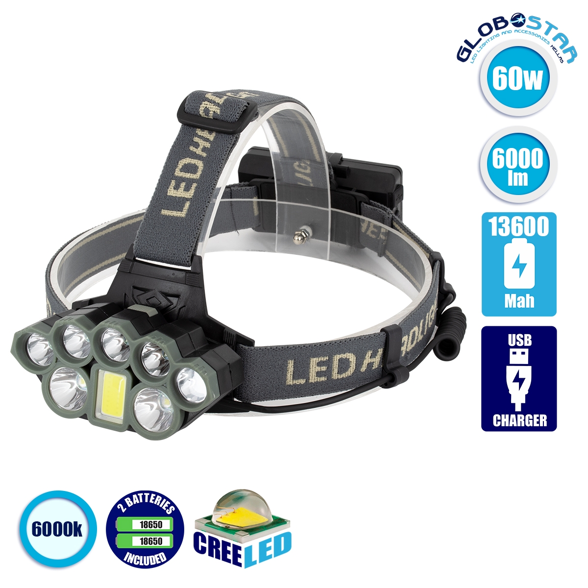 Ο φακός λειτουργεί με 2 επαναφορτιζόμενες μπαταρίες λιθίου 6800mAh, όπως και ο 1 φορτιστης (USB) που συμπεριλαμβάνονται στη συσκευασία.